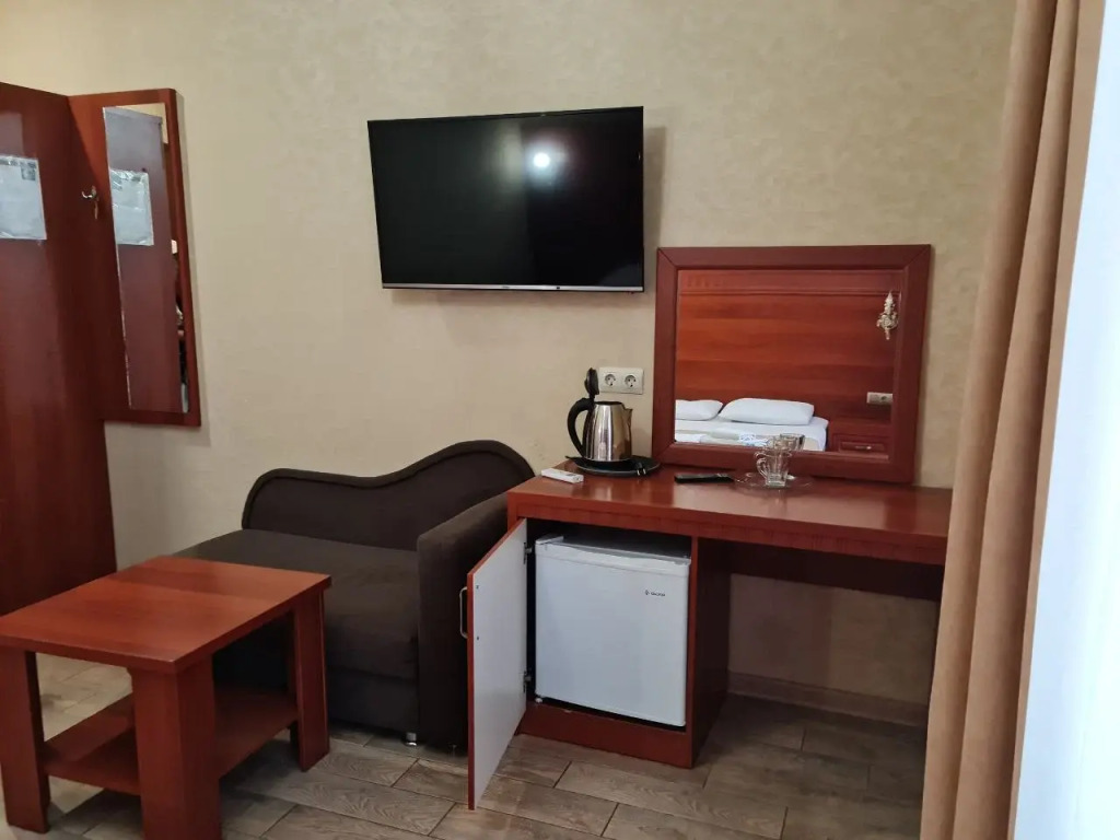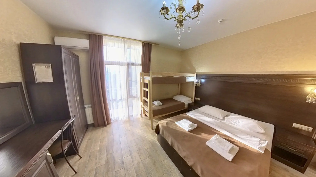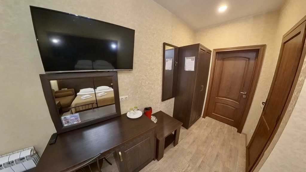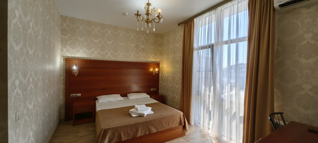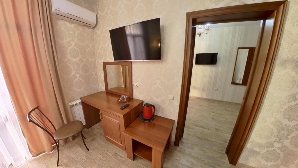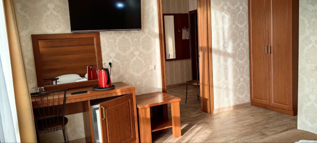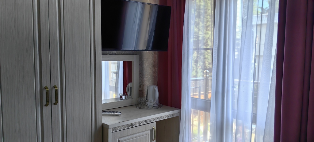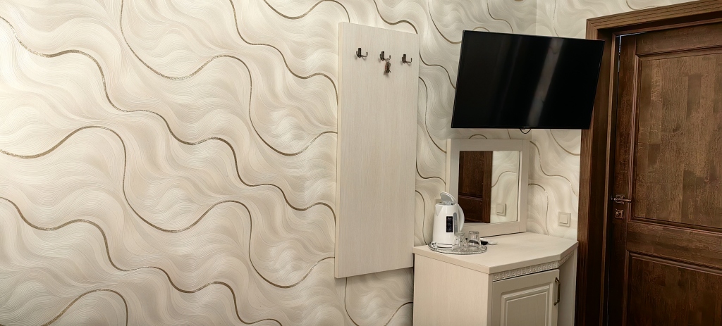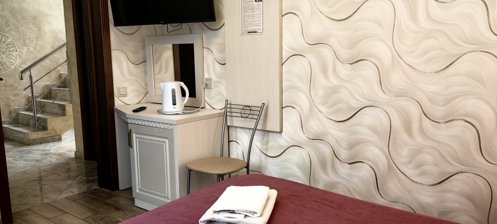 Номер уютно обставлен и оснащён необходимым, чтобы отдохнуть после долгого и насыщенного дня. Имеются телевизор и халат. Оснащение зависит от выбранной категории номера.