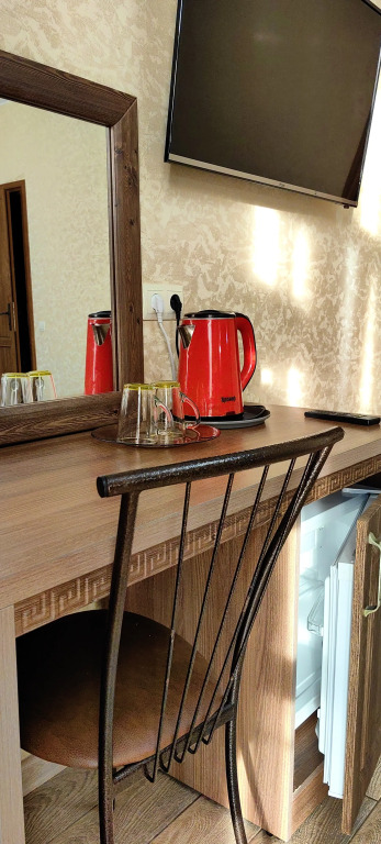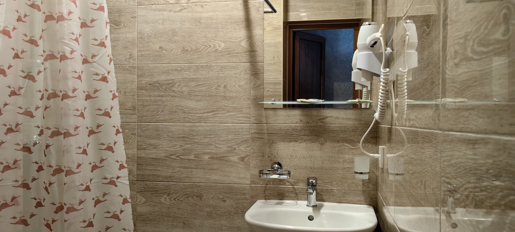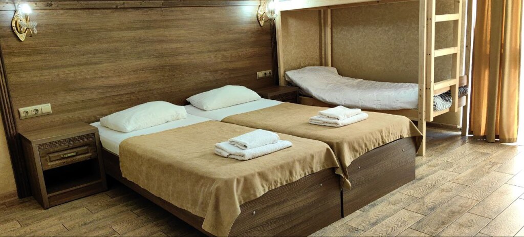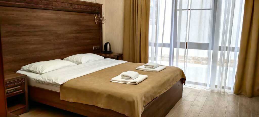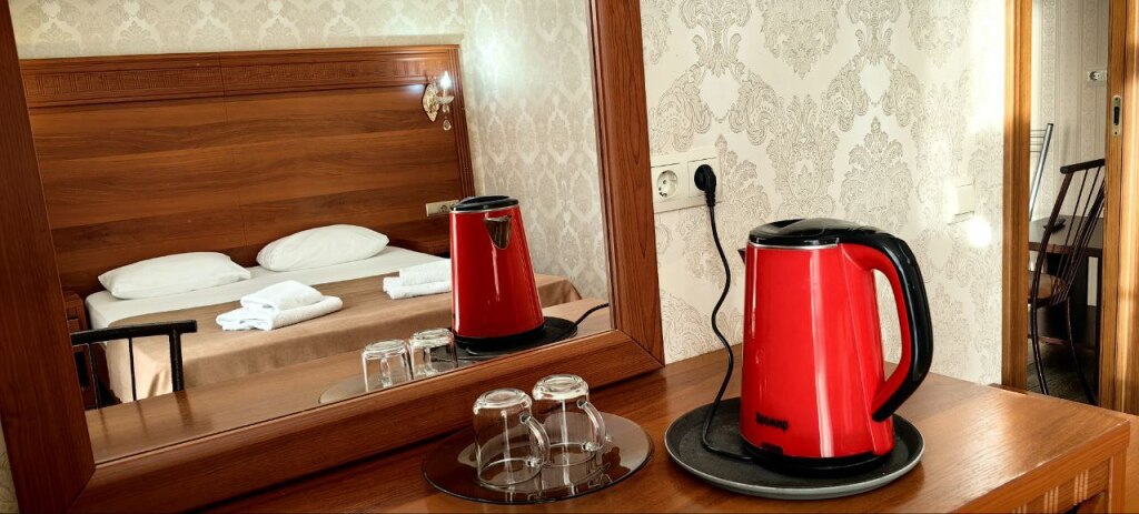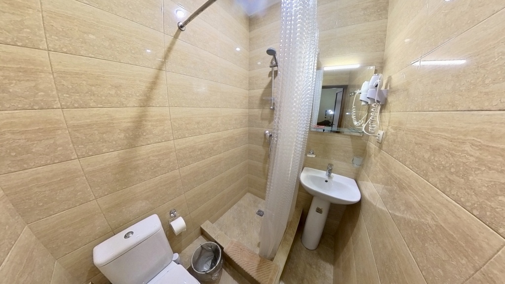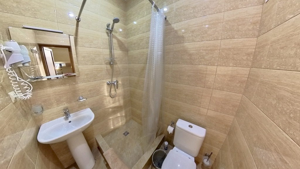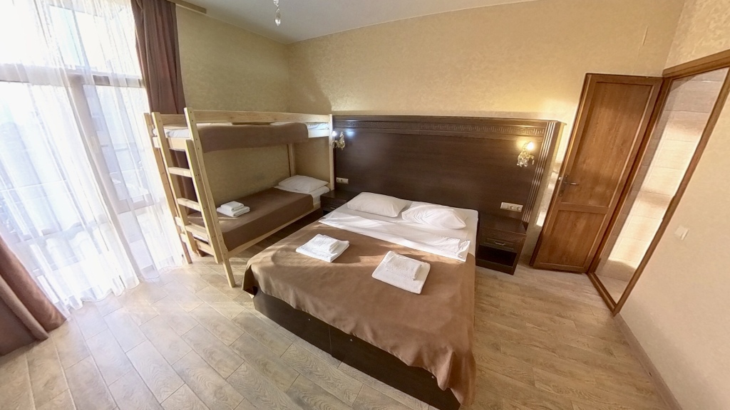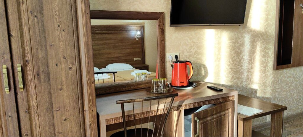 Номер уютно обставлен и оснащён необходимым, чтобы отдохнуть после долгого и насыщенного дня. Имеются телевизор и халат. Оснащение зависит от выбранной категории номера.