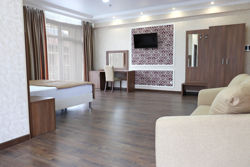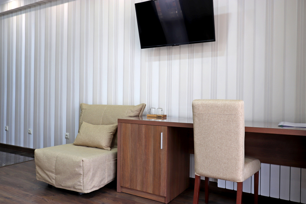 В номере вас будут ждать телевизор. Оснащение зависит от выбранной категории номера.
