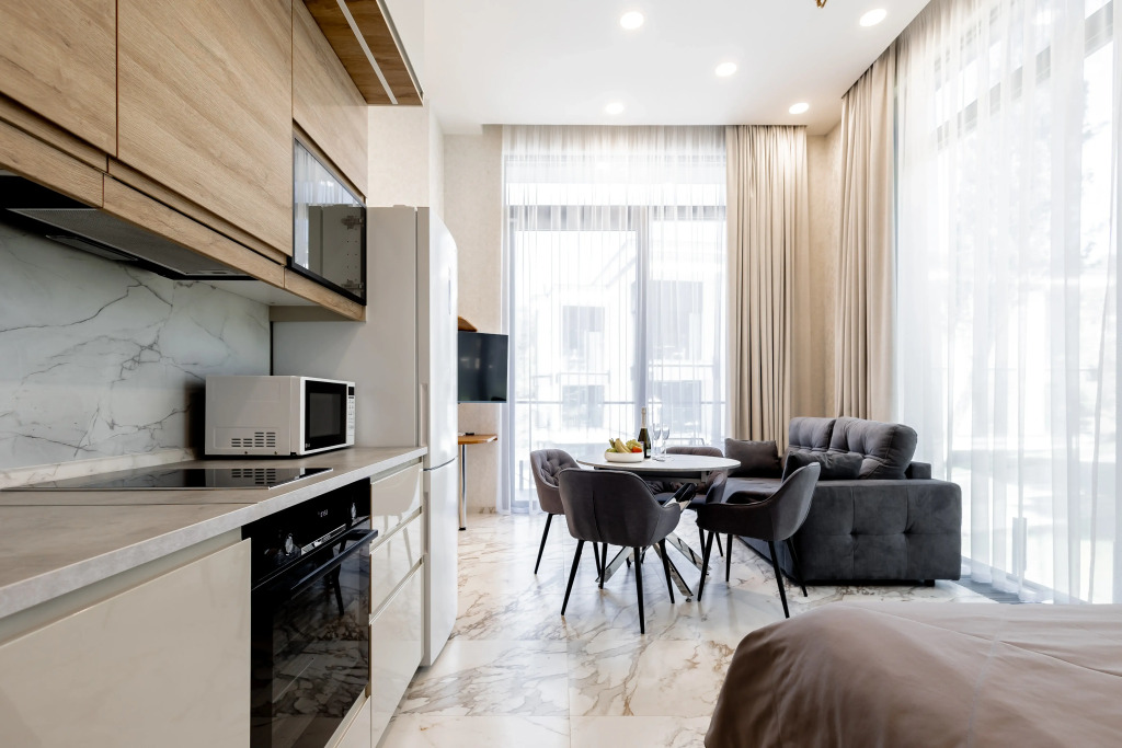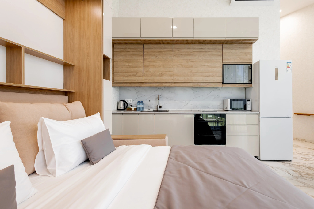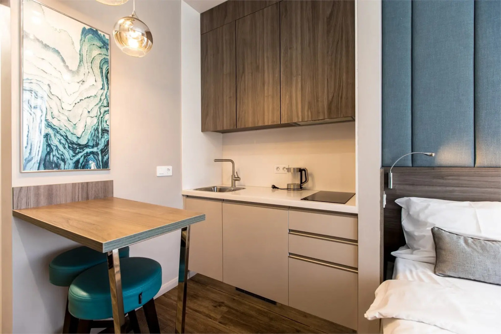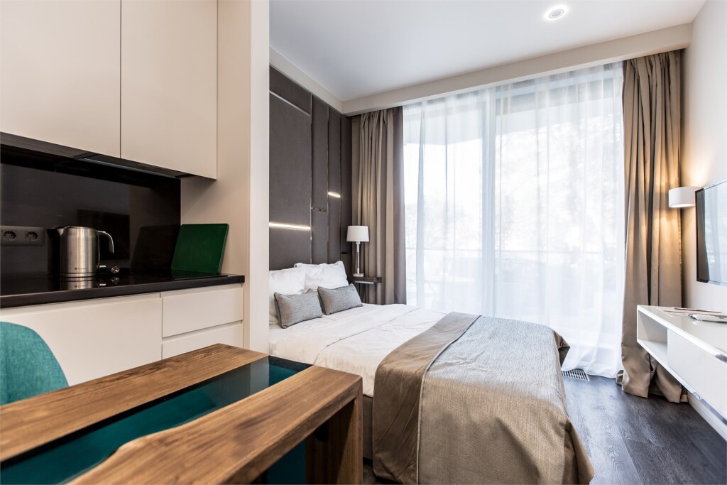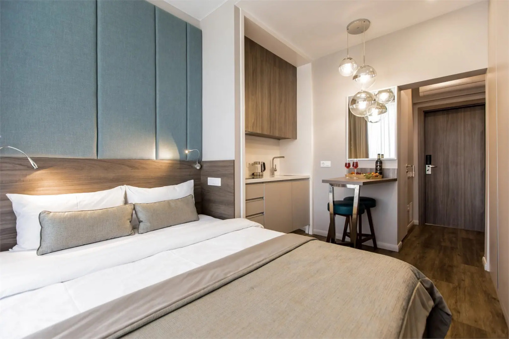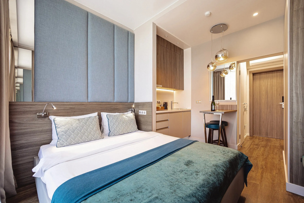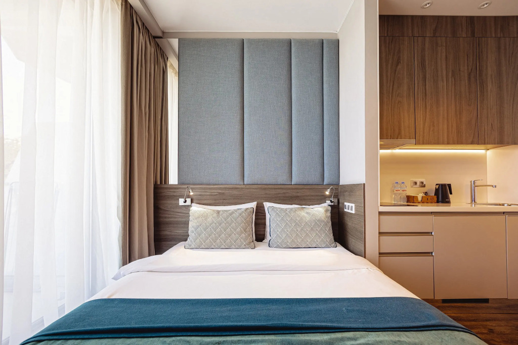 Гостям предлагаются номера с мини-кухней и дизайнерским оформлением.