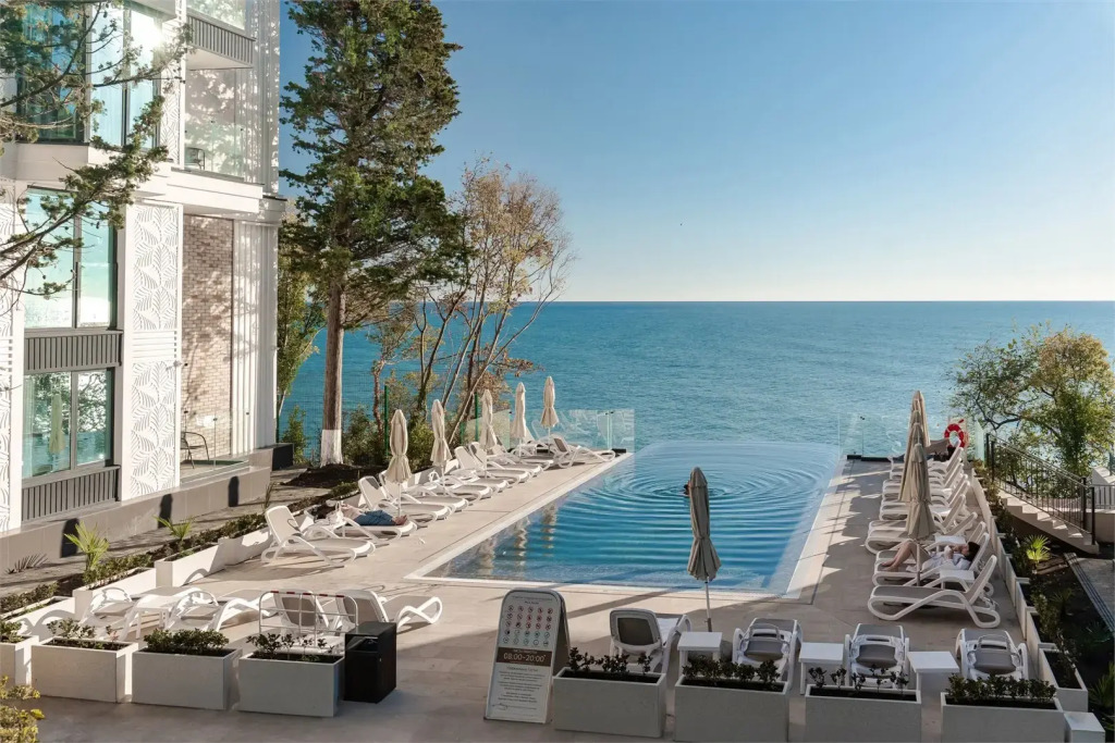 Круглогодично к услугам гостей панорамная сауна, два подогреваемых бассейна с видом, в том числе инфинити-бассейн. На территории имеются открытые спортивная и детская площадка.