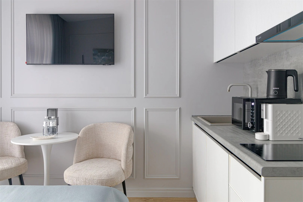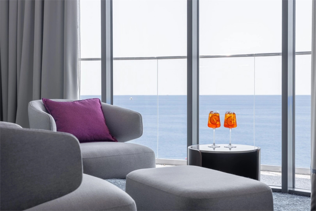 Для гостей услуги ресторана на 100 посадочных мест, ресторан на 5 этаже Спортивно-оздоровительного комплекса на 117 мест и терраса на 65 мест, лобби-бар на 30 мест и детокс-бар на 20 мест.