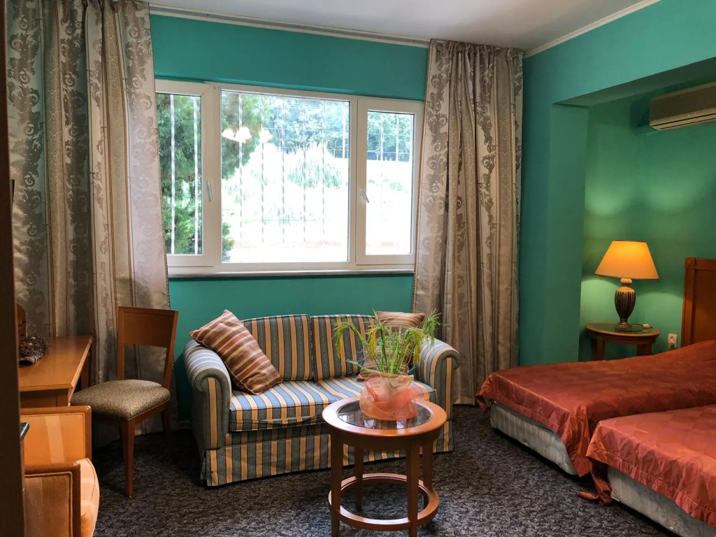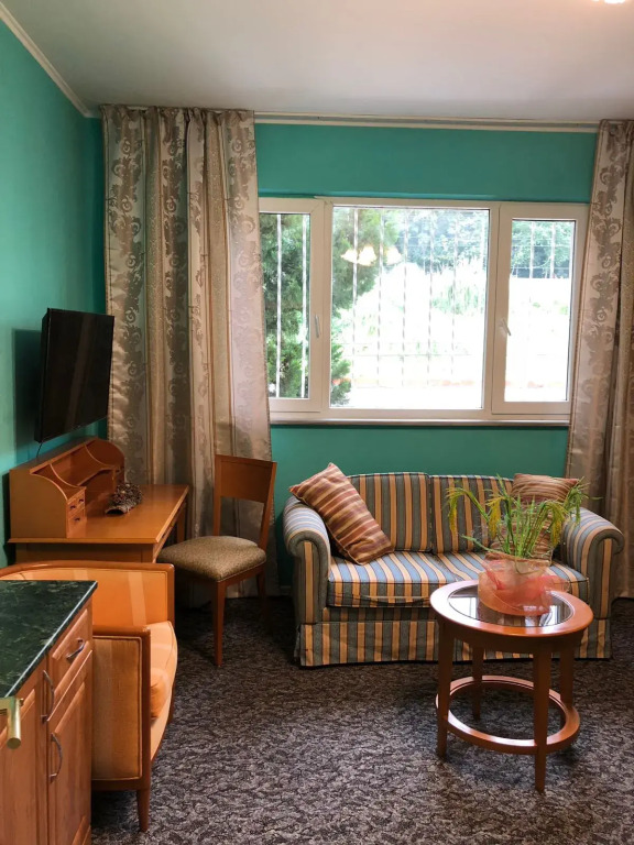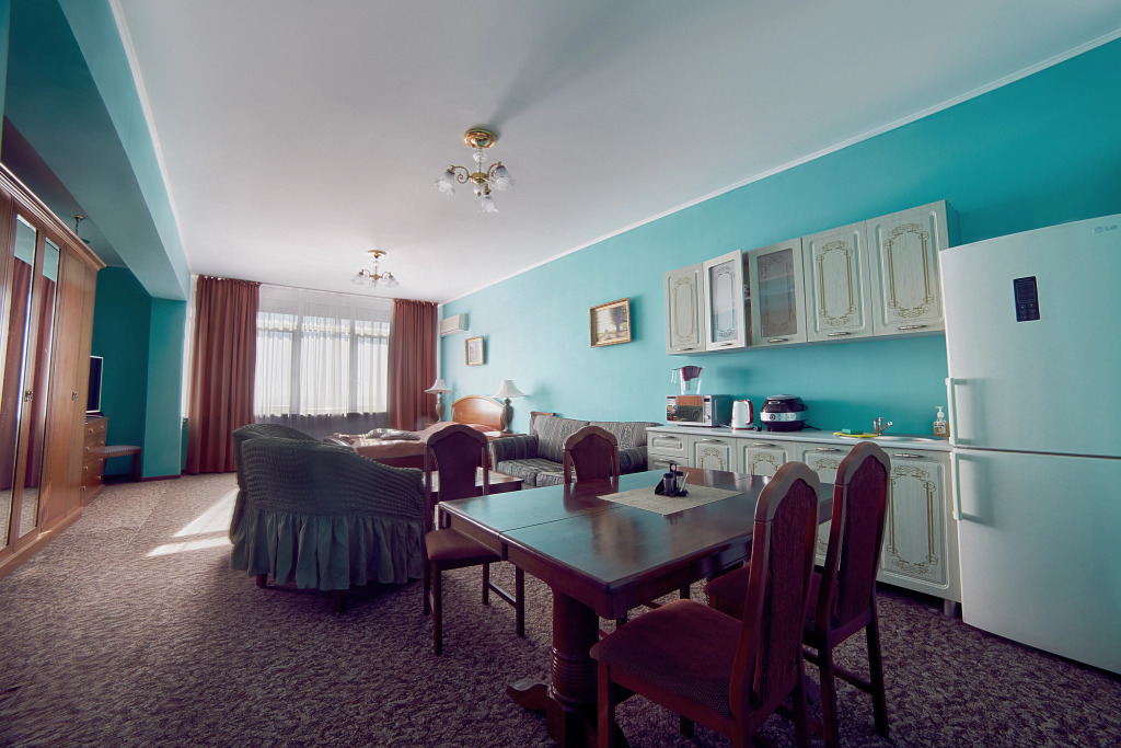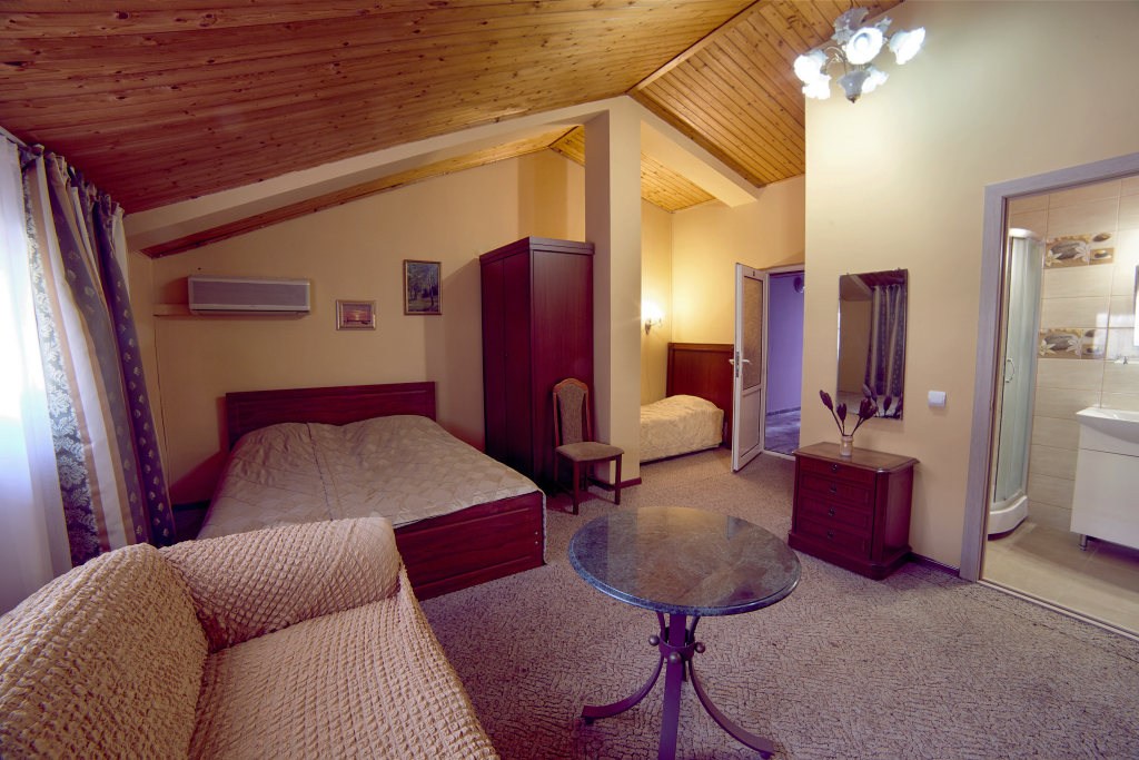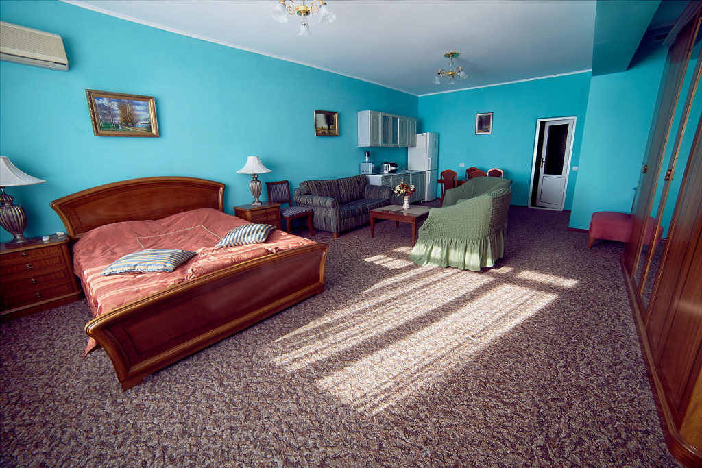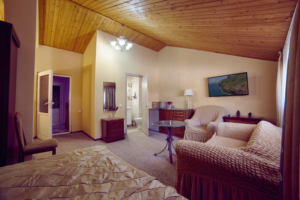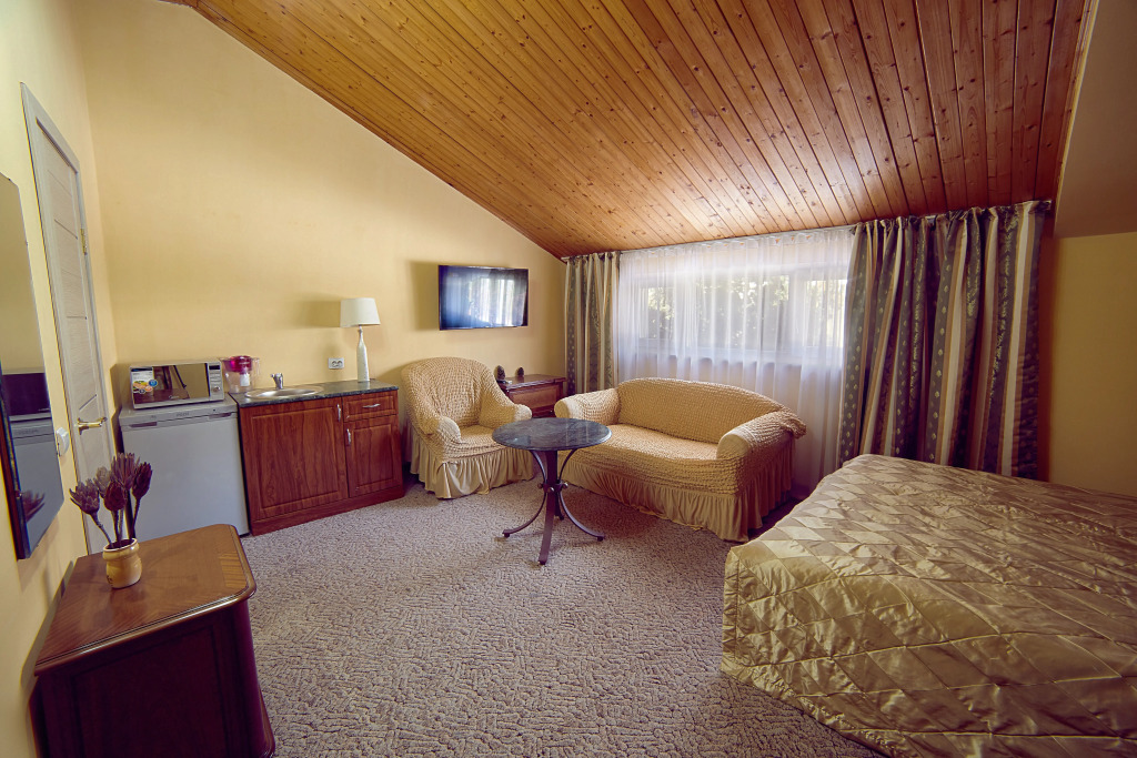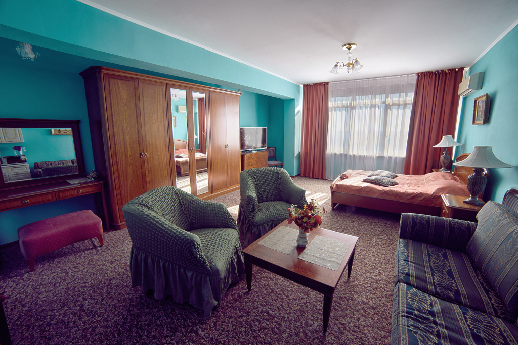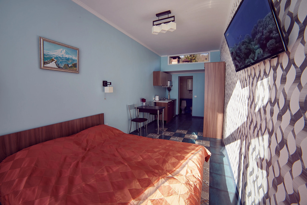 Номер уютно обставлен и оснащён необходимым, чтобы отдохнуть после долгого и насыщенного дня. Имеются телевизор. Оснащение зависит от выбранной категории номера.