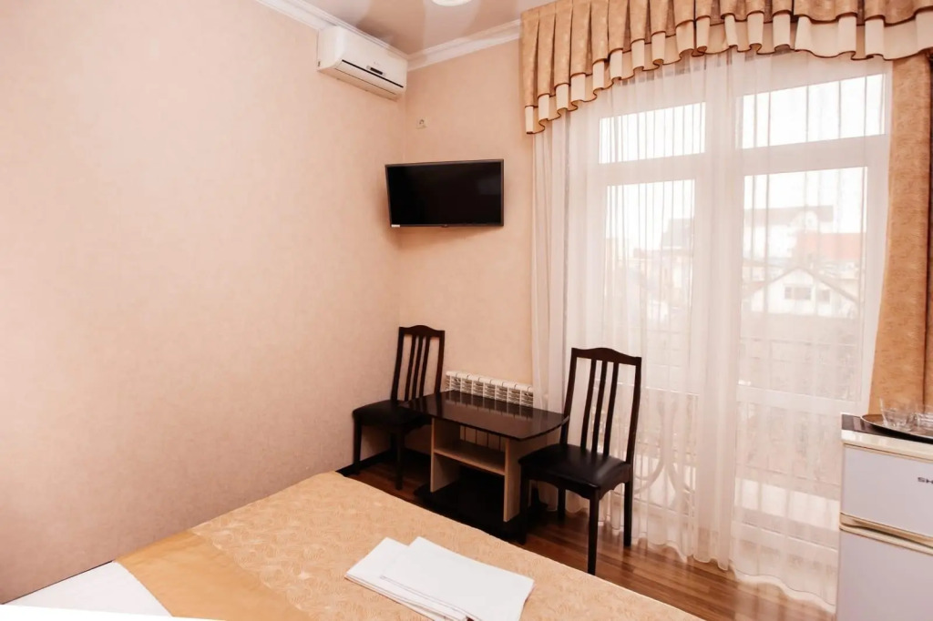 Хорошее расположение. Близко к рынку и морю. Есть где погулять. Рядом магазины. Еда каждый день одинаковая. По телевизору только Россия 24. Брали завтрак и ужин. От ужина отказались, еда очень жирная. По состоянию здоровья не могу такое есть. Радом есть столовые. Лучше кушайте там.