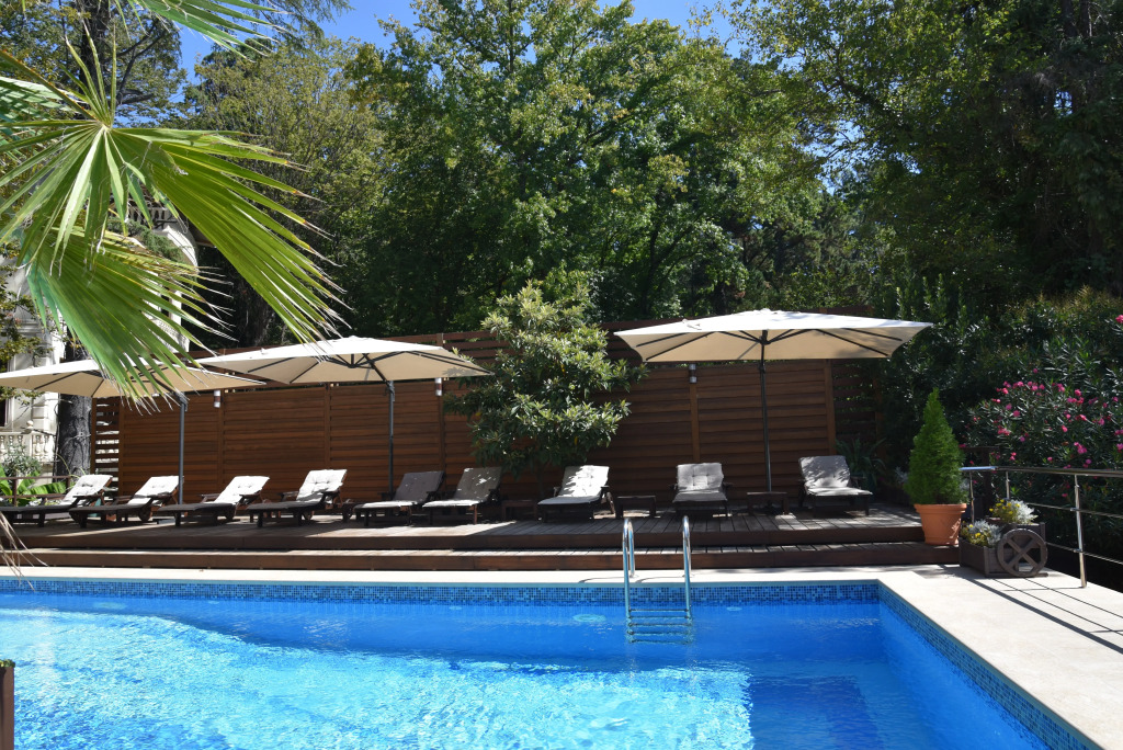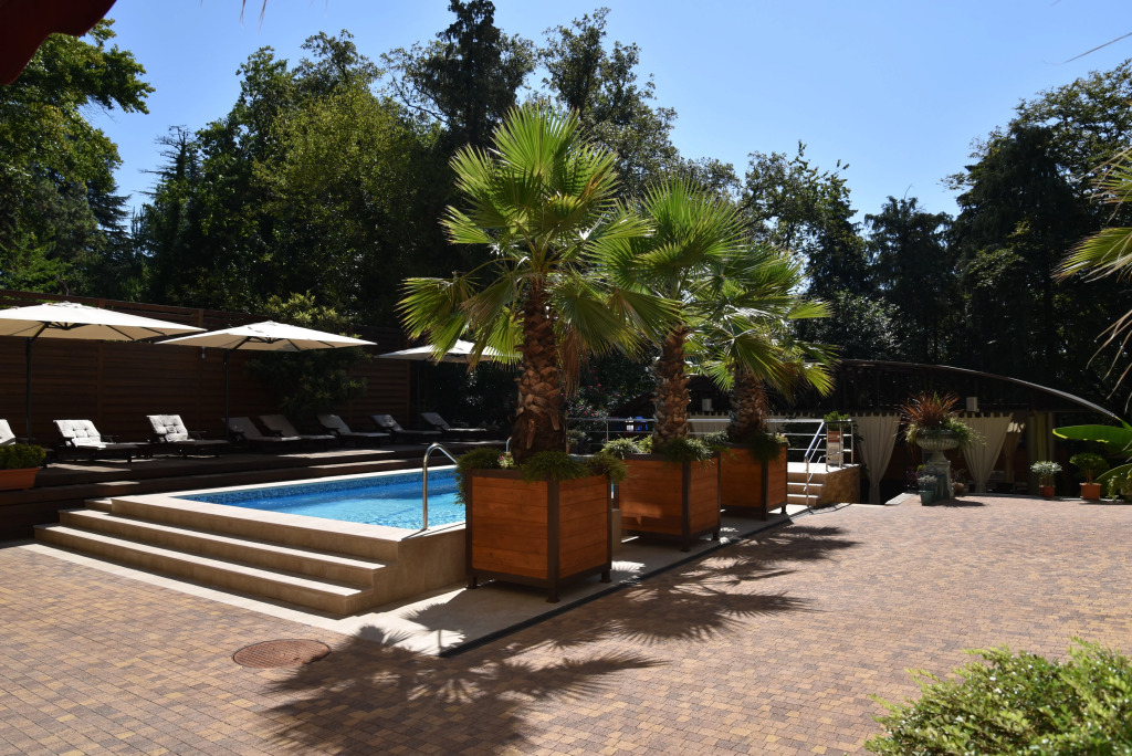 На закрытой территории отеля есть круглогодичный бассейн с подогревом, сауна, кафе, летний бар, зона отдыха, пруд. В межсезонье планируется установка банных чанов. Для активного отдыха предусмотрен теннисный стол.