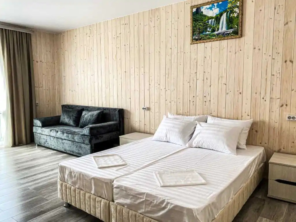В номере вас будут ждать телевизор. Оснащение зависит от выбранной категории номера.