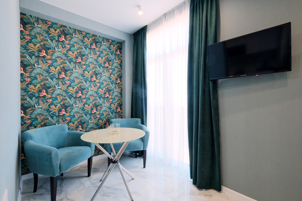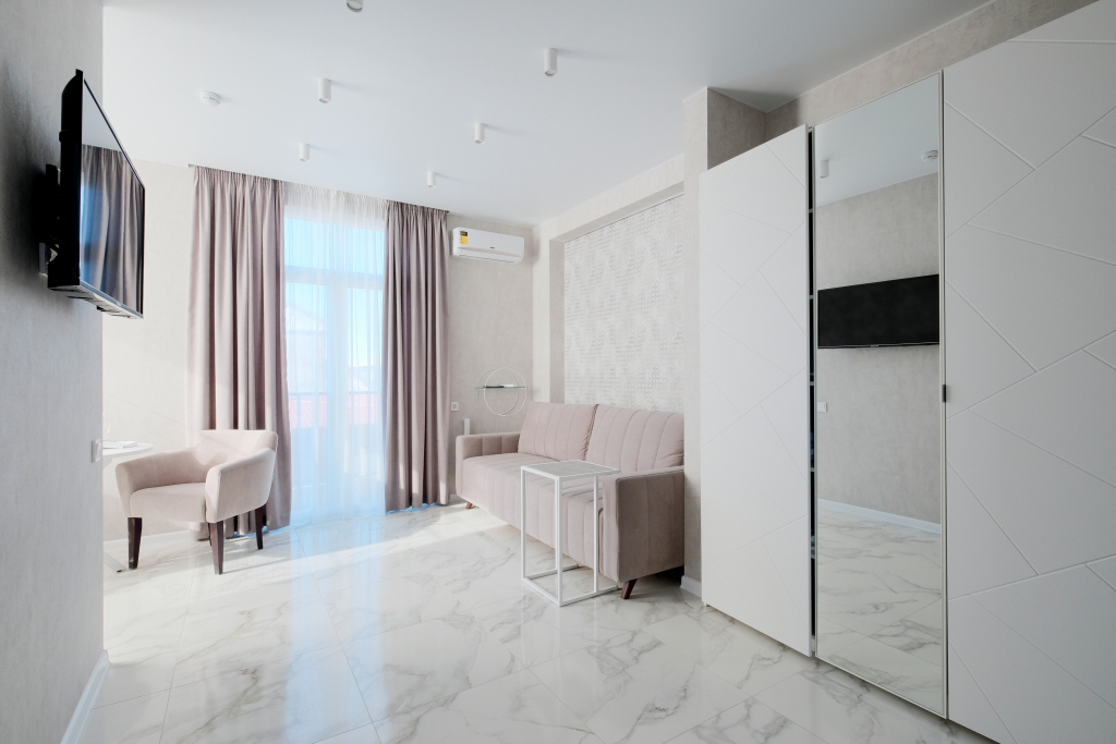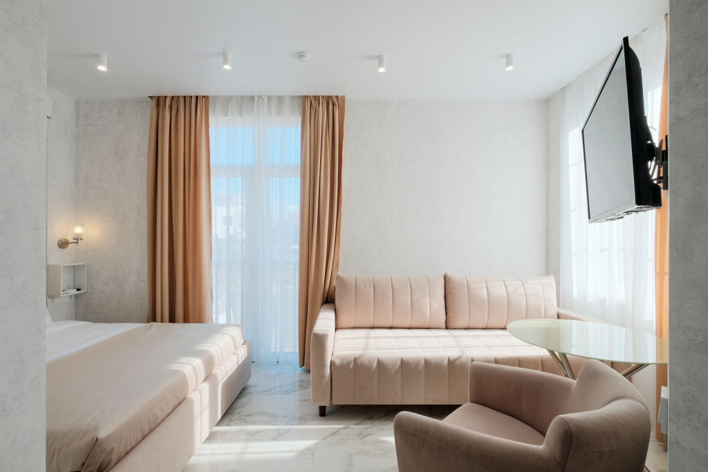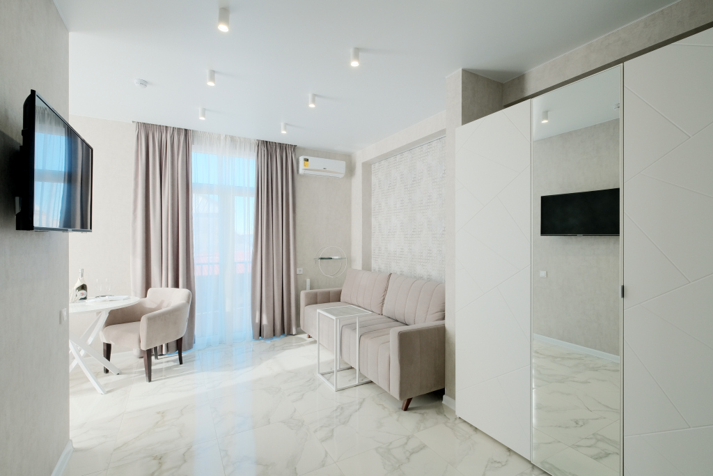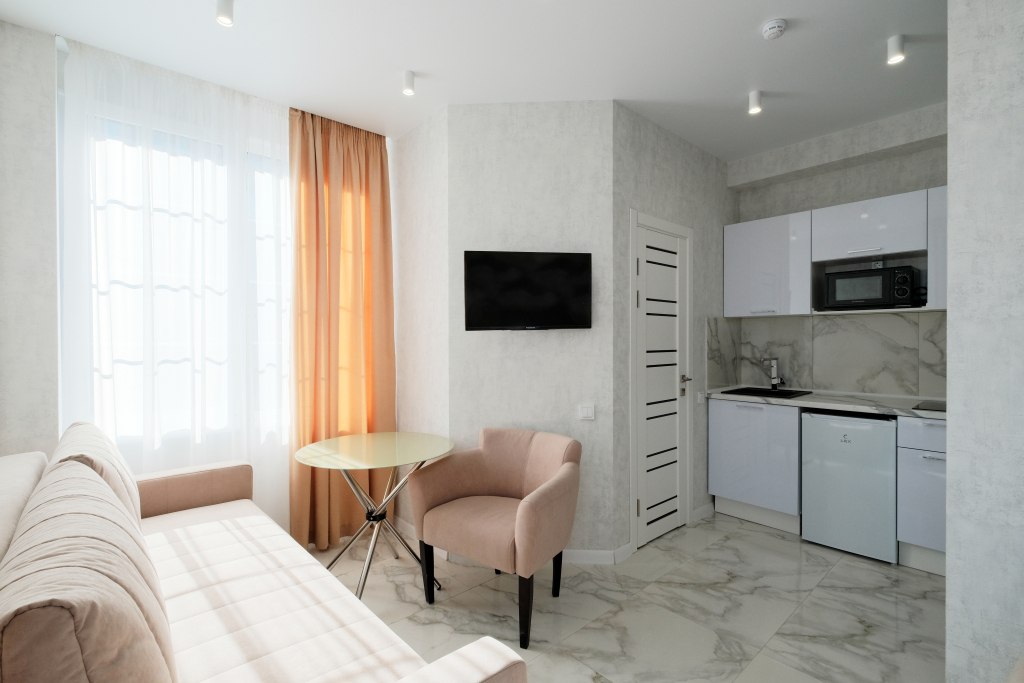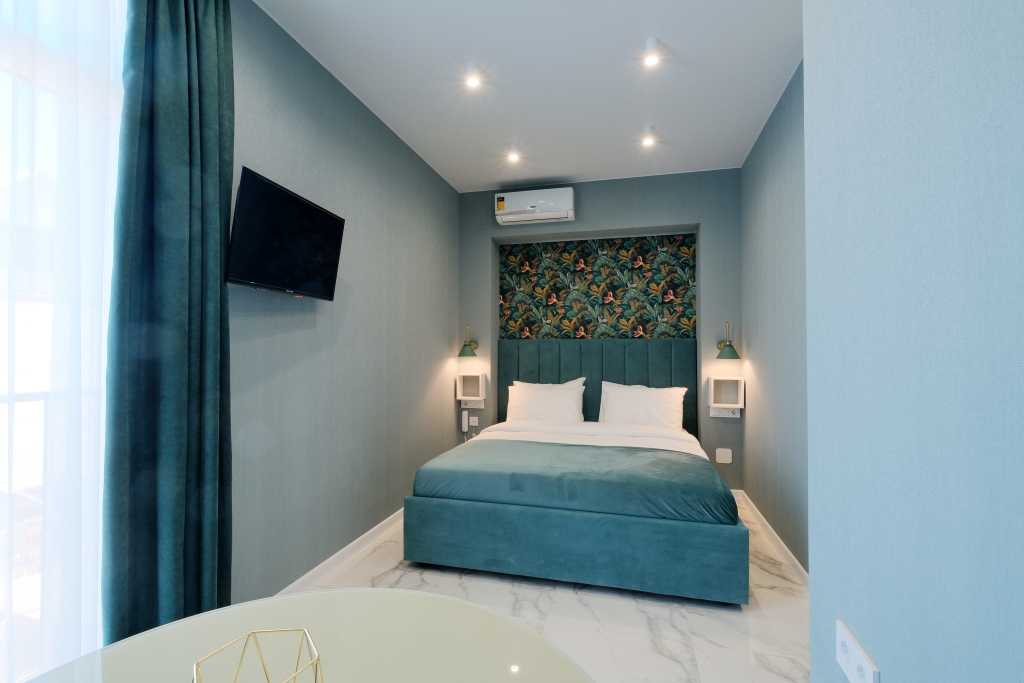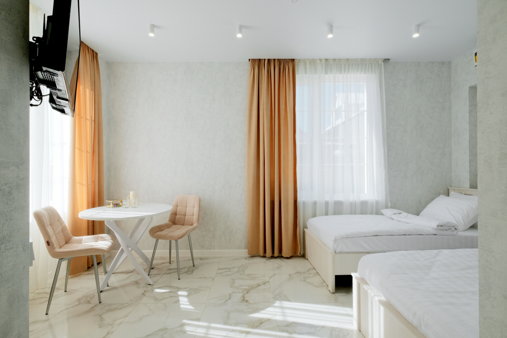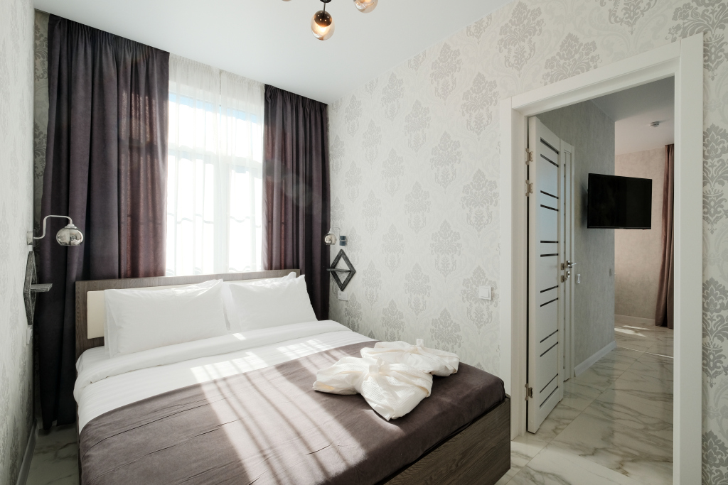 В номере вас будут ждать телевизор и халат. Оснащение зависит от выбранной категории номера.