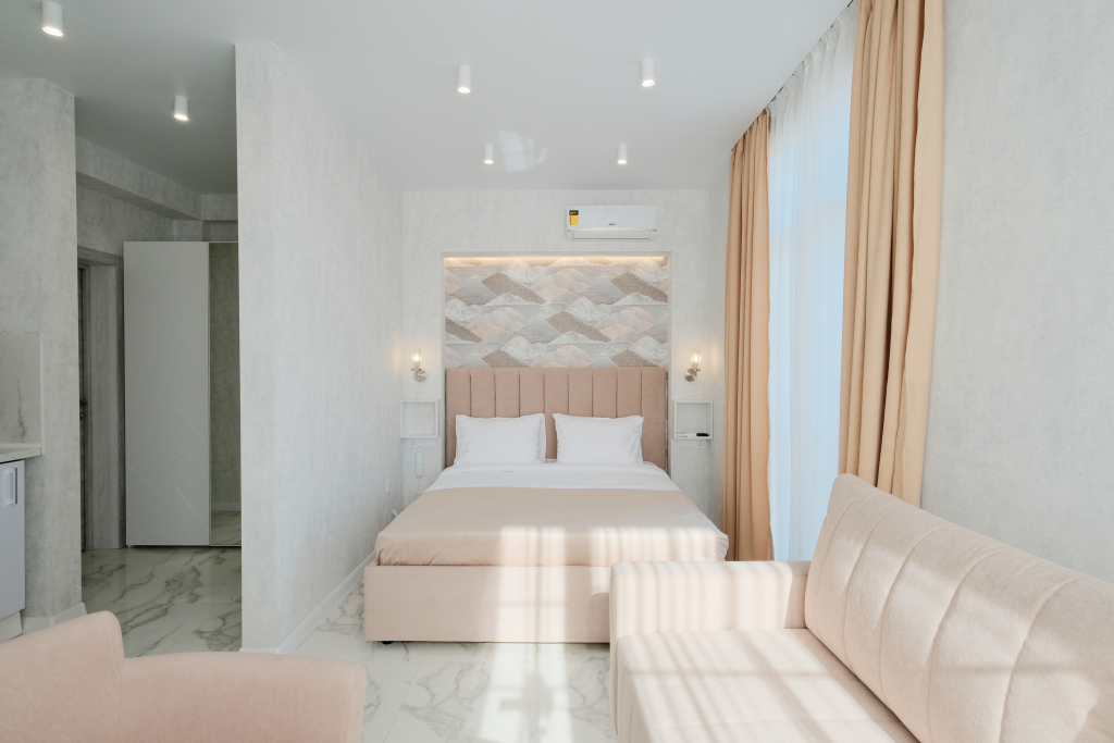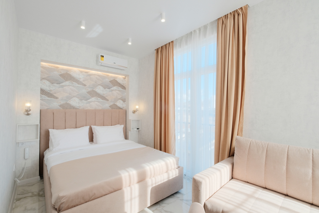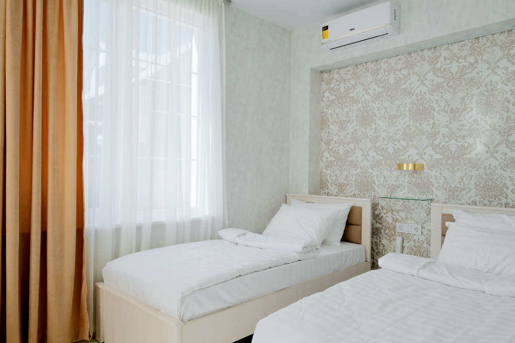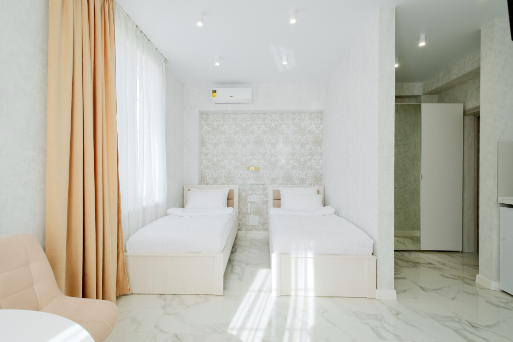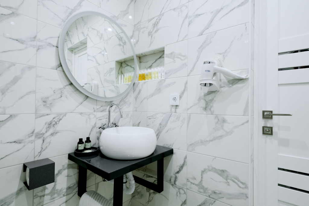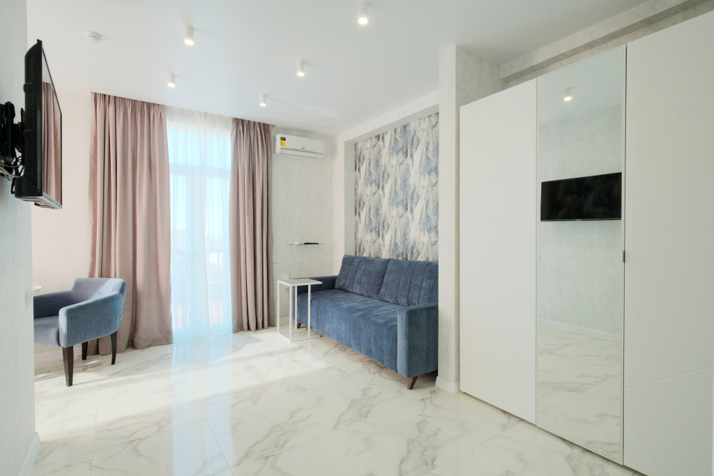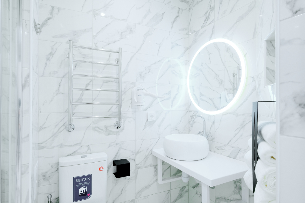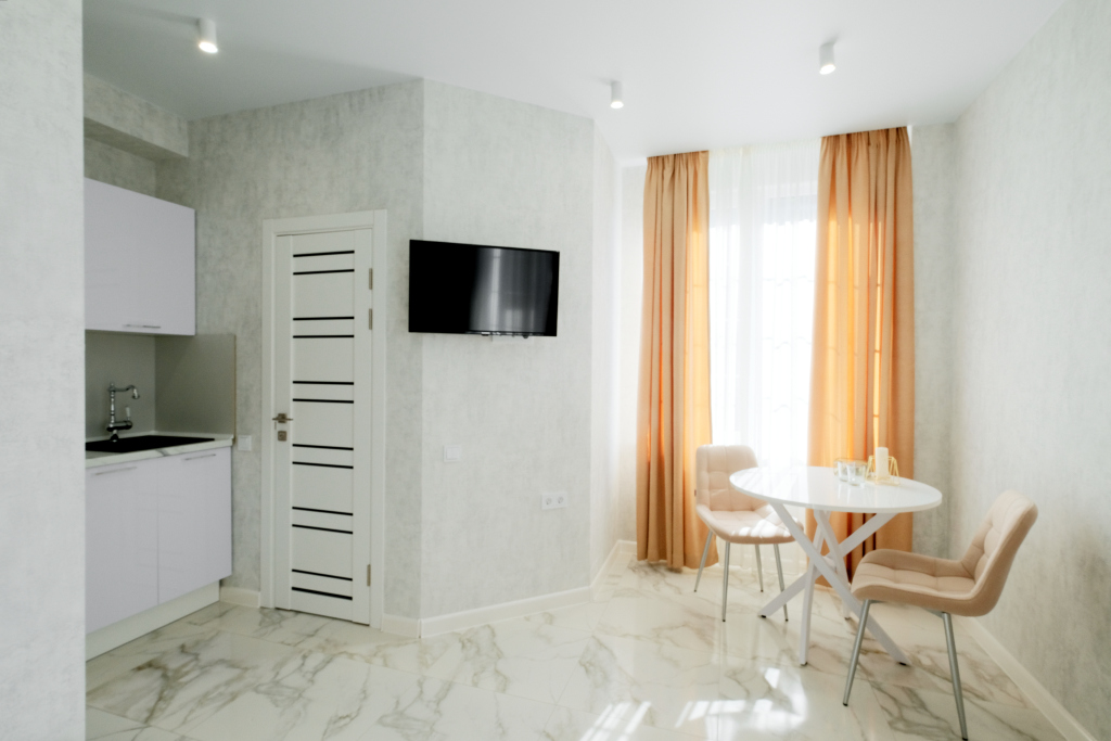 В номере вас будут ждать телевизор и халат. Оснащение зависит от выбранной категории номера.