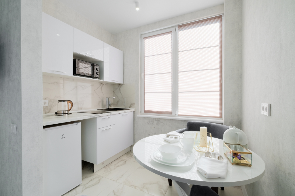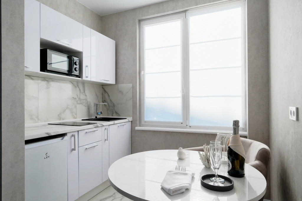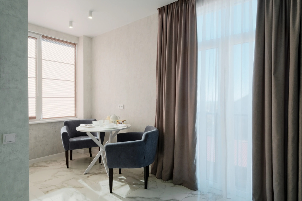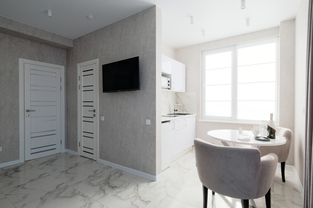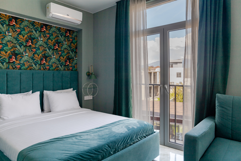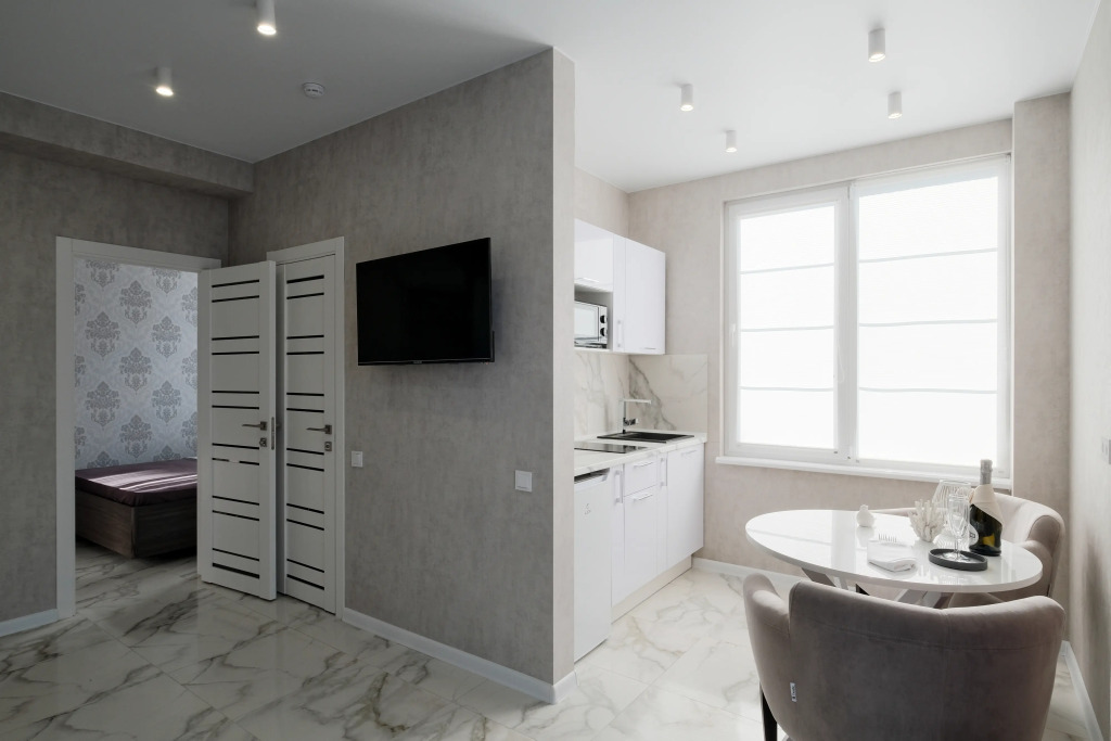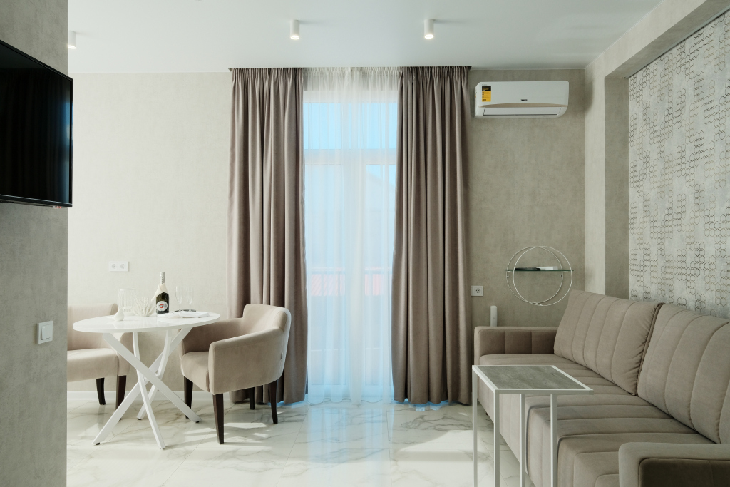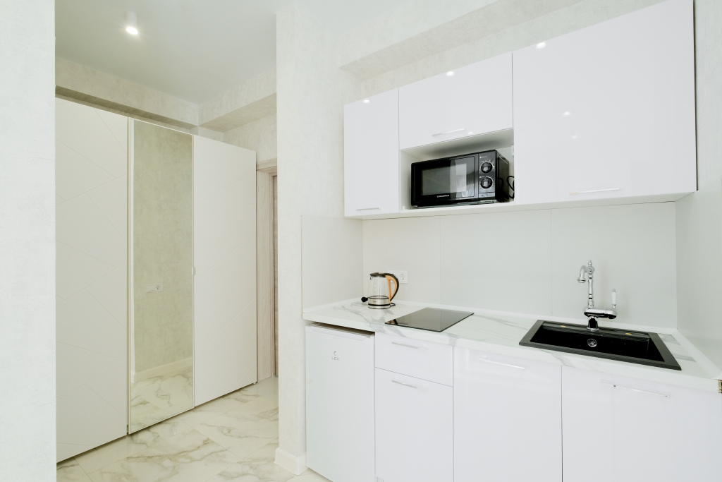 В номере вас будут ждать телевизор и халат. Оснащение зависит от выбранной категории номера.