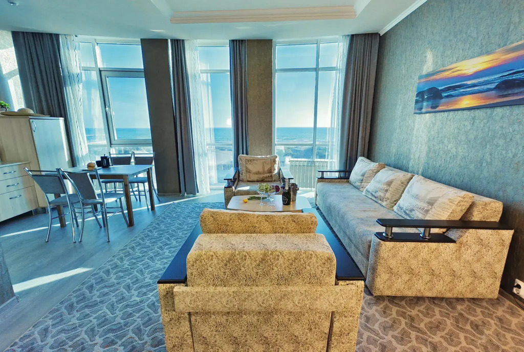 На территории есть терраса с видом на море. Гостям предоставляется пятиразовое питание. Утром подают игристое вино, с обеда до ужина — вино и пиво. Также предлагаются мороженое, попкорн и сладкая вата. На территории отеля находятся бассейн, финская сауна, настольный теннис и бильярд. Для детей работает игровая комната с аниматорами, которые проводят игры и мастер-классы. По вечерам для гостей организуют дискотеки, караоке и спортивные соревнования.
