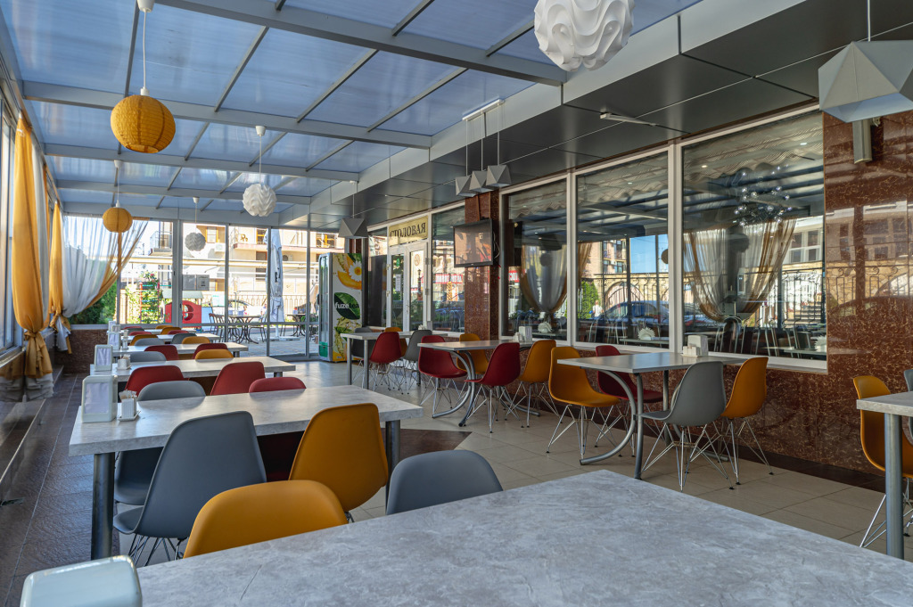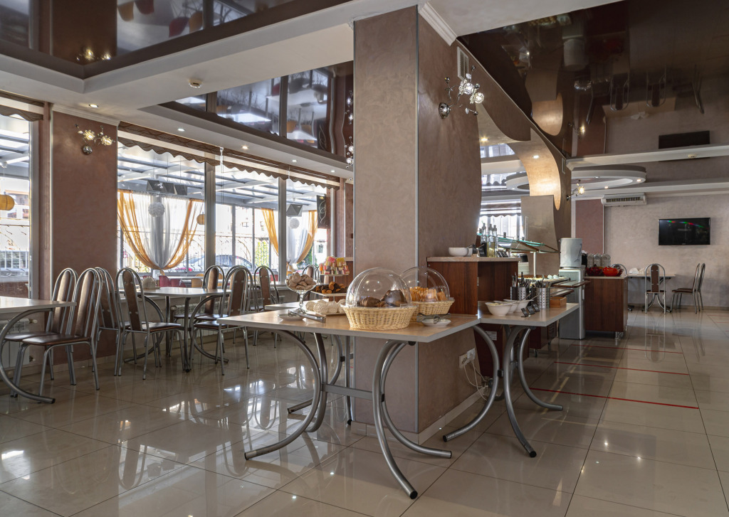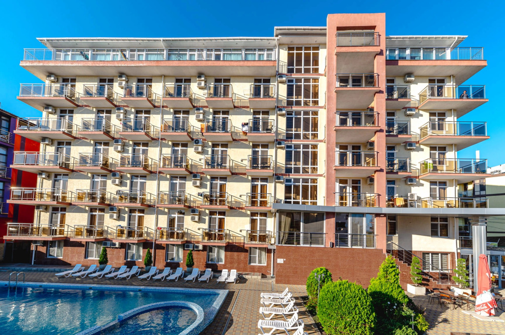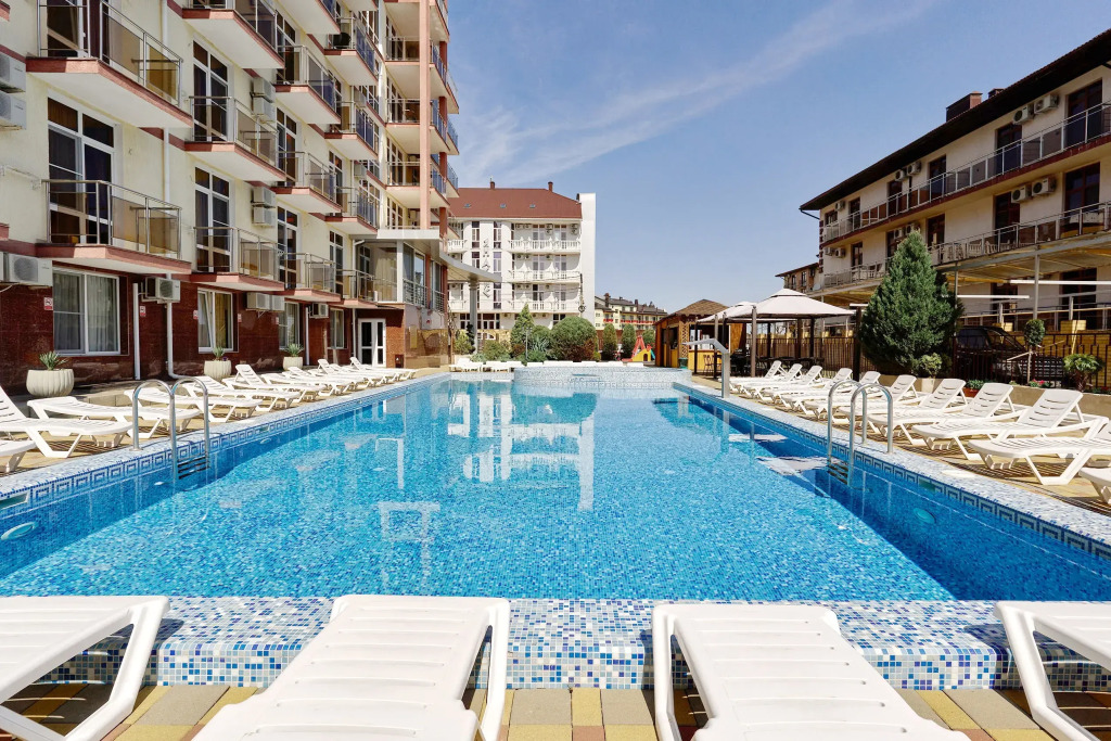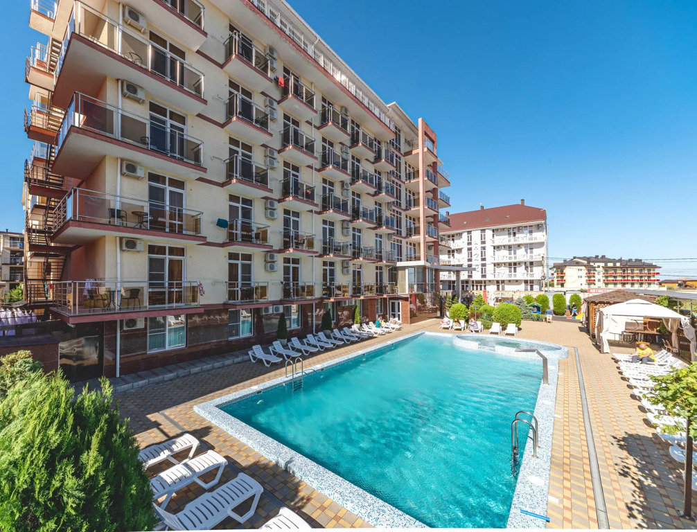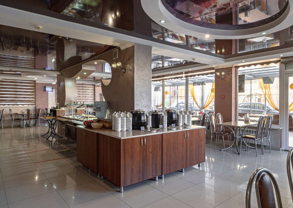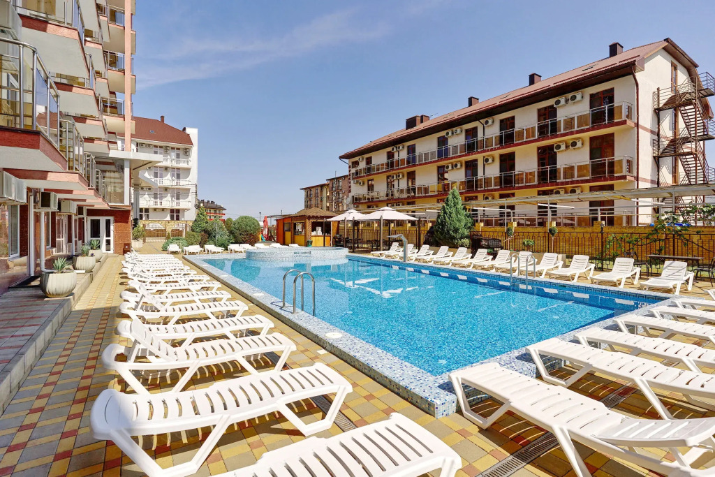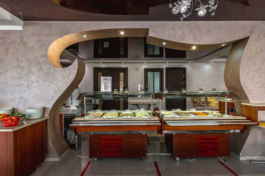 Отель работает по системе «всё включено». Гостям предлагается 5-разовое питание: горячие и холодные блюда европейской, кавказской и русской кухонь, нарезки, снеки, десерты и выпечка, а также напитки (включая пиво и вино местного производства) без ограничений.