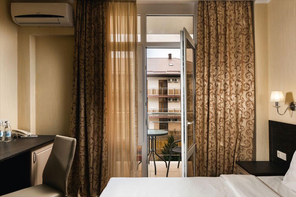 В каждом номере отеля имеется: балкон (кроме категории «Эконом»), собственная ванная комната с душевой кабиной, полотенца и косметические принадлежности, полотенца для бассейна на каждого гостя, фен, мини-холодильник, кабельное ТВ, тапочки и халаты (кроме категорий «Эконом» и «Стандарт»).