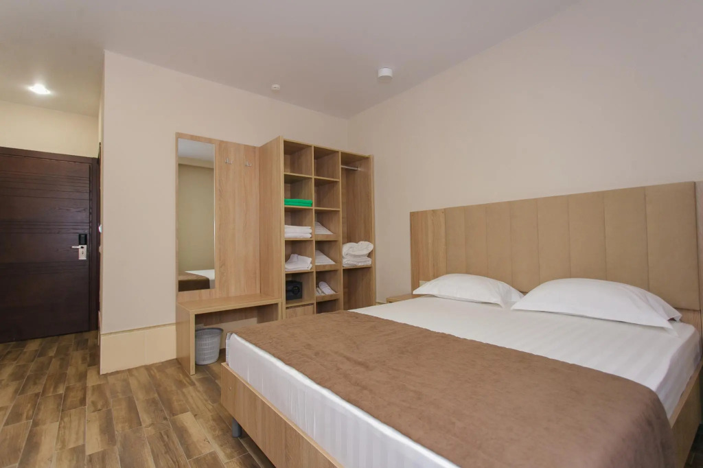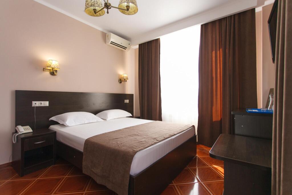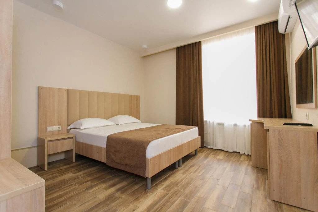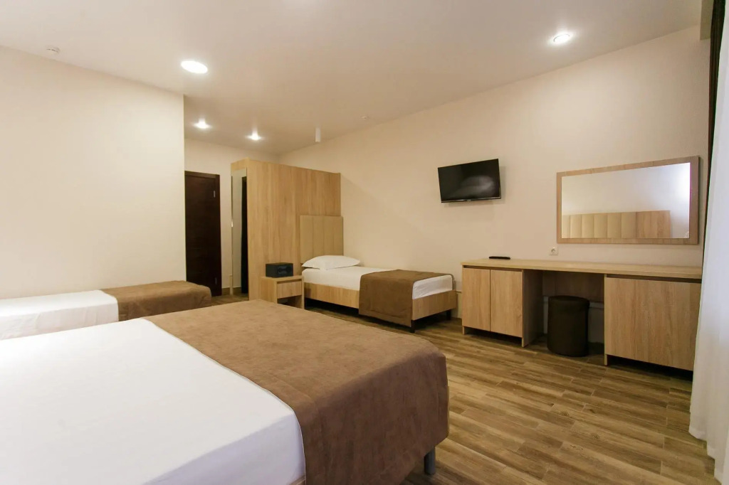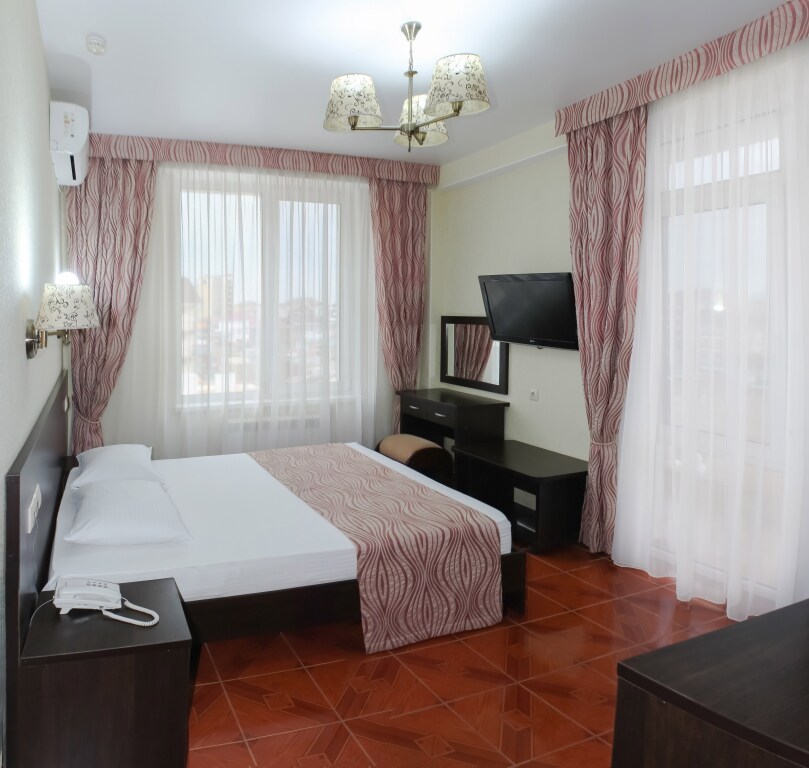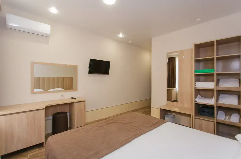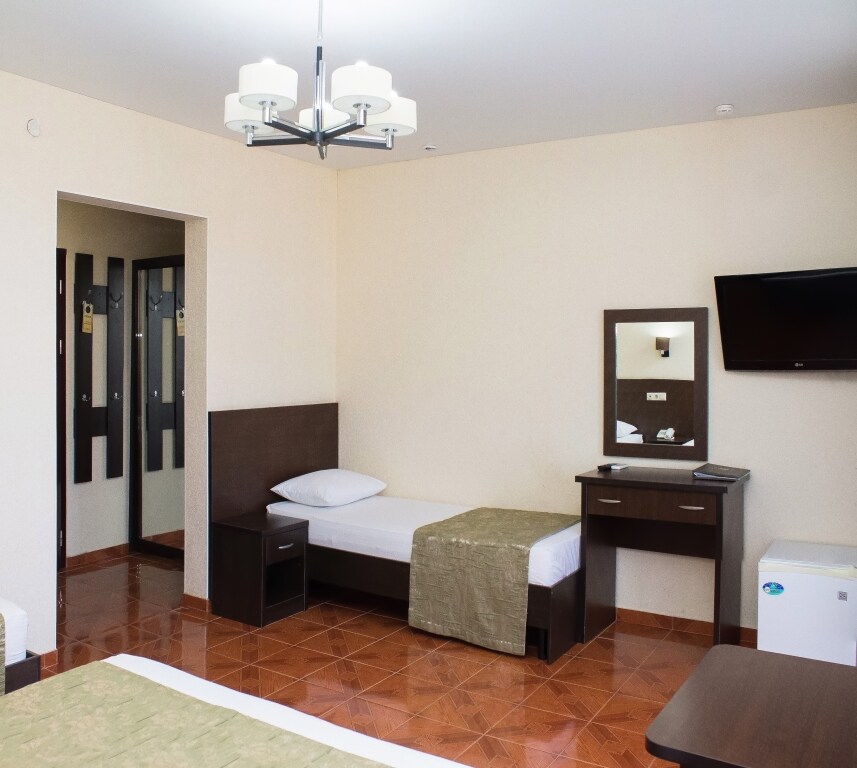 Номер уютно обставлен и оснащён необходимым, чтобы отдохнуть после долгого и насыщенного дня. Имеются душ и телевизор. Оснащение зависит от выбранной категории номера.