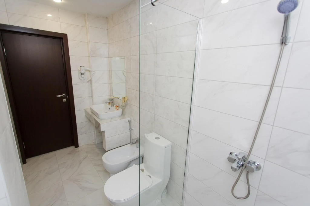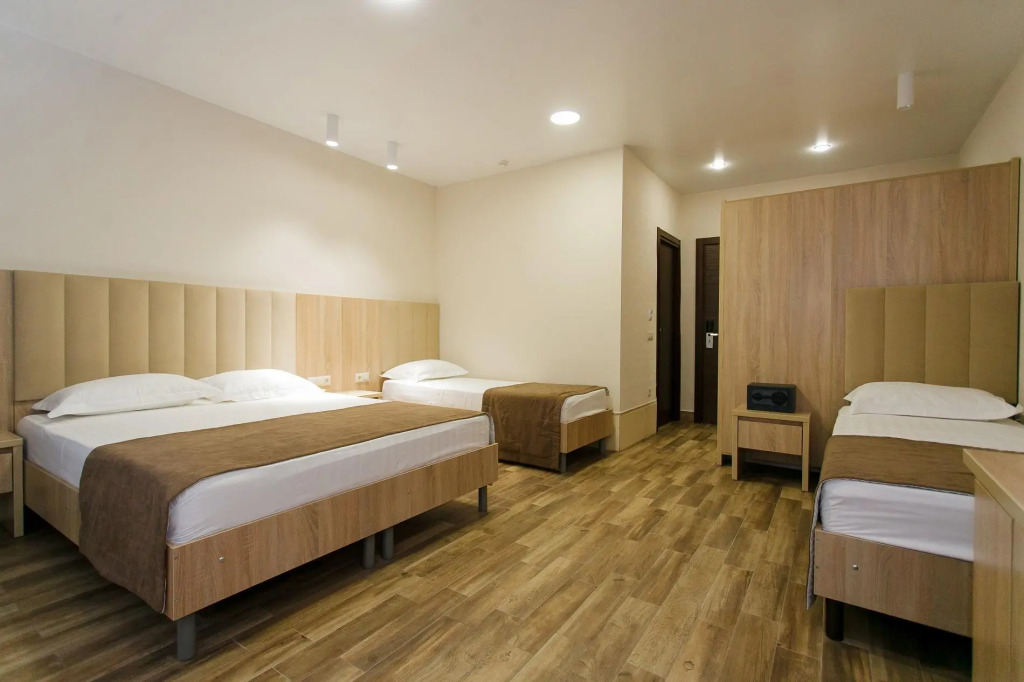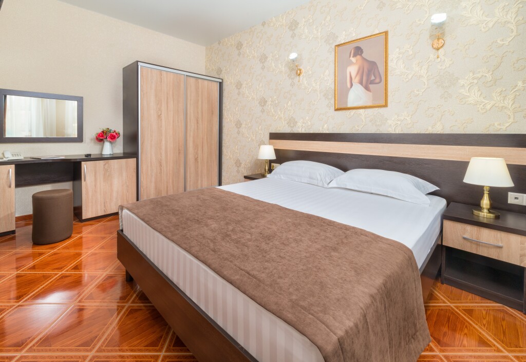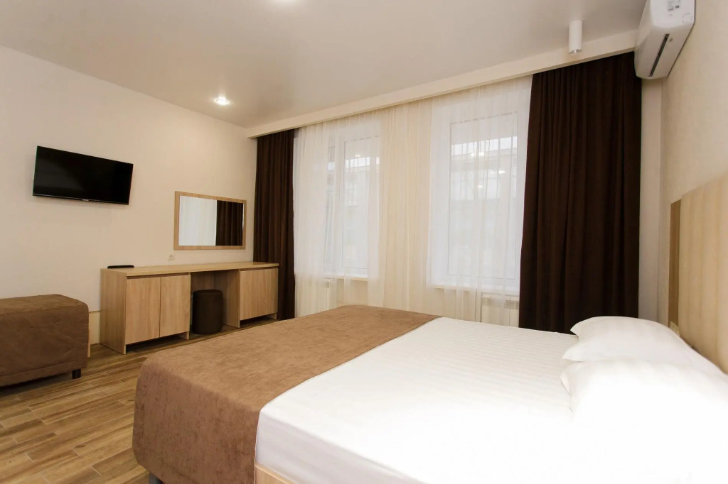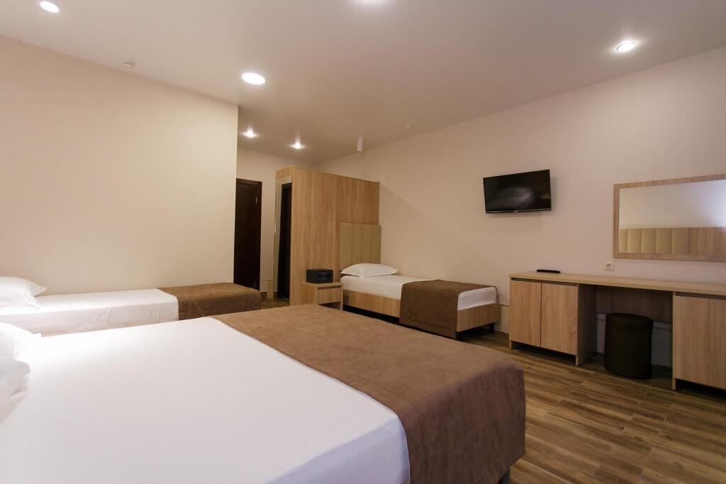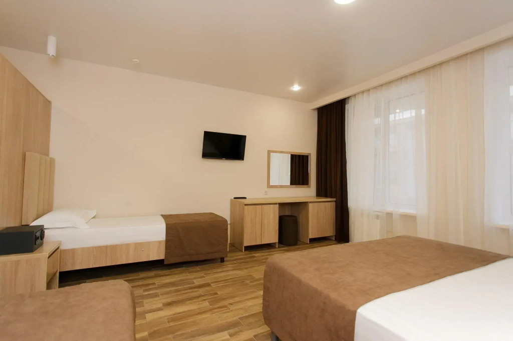 Номер уютно обставлен и оснащён необходимым, чтобы отдохнуть после долгого и насыщенного дня. Имеются душ и телевизор. Оснащение зависит от выбранной категории номера.