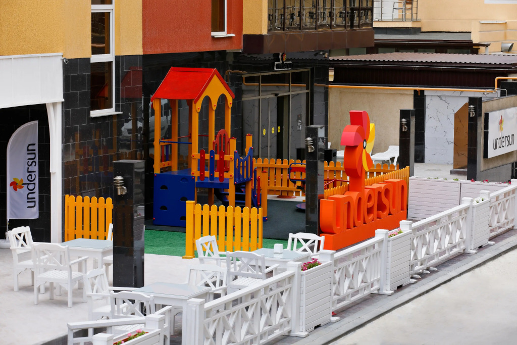 Чистый отель,приятно удивила служба клининга-каждое утро производилась уборка детской площадки,лифтов и общественных помещений( лежаков и бассейна). Бассейна два,вполне хватало для всех желающих места. Анимация была,но мы как то не попадали на нее,может,кому то и актуальна она. Детская площадка 2 штуки,тк у отеля 2 корпуса. Прекрасный семейный отель,очень много деток. Единственный очень шумно,но это скорее уже не к отелю вопрос,а к близлежащим кафешкам. На пляж выдавали полотенца для каждого проживающего ( бесплатно),замена каждые 3 дня. Парковка в отеле есть,огромная,охраняемая,платная.