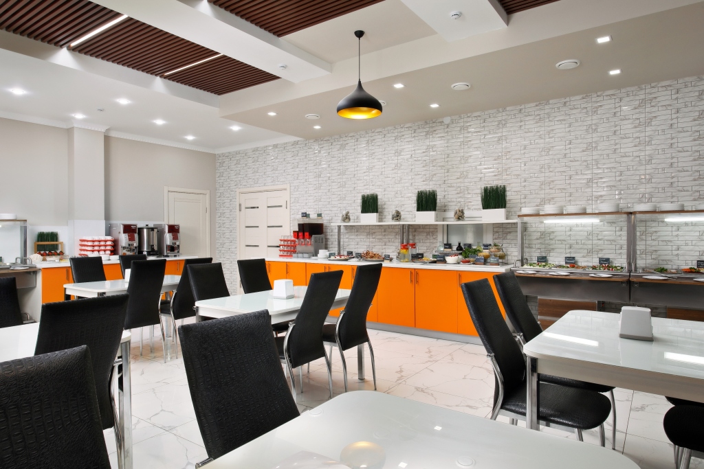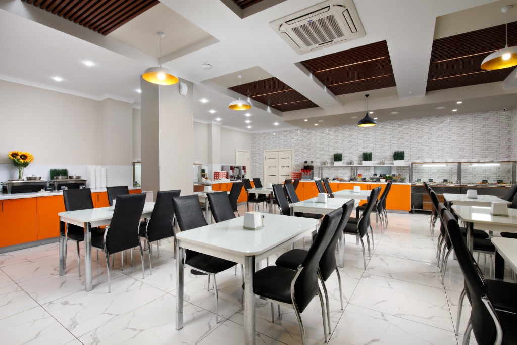 Очень разнообразное меню,вкусно и даже малышам есть что покушать. Всегда свежие овощи и фрукты. Единственное пожелание-на обед тоже хочется фрукты и сладкий стол,и кофемашину можно включать не только для завтрака))
