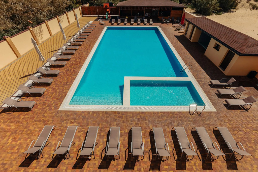 Ресторан и бассейн расположены в 150 м от корпуса проживания.