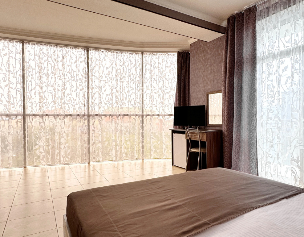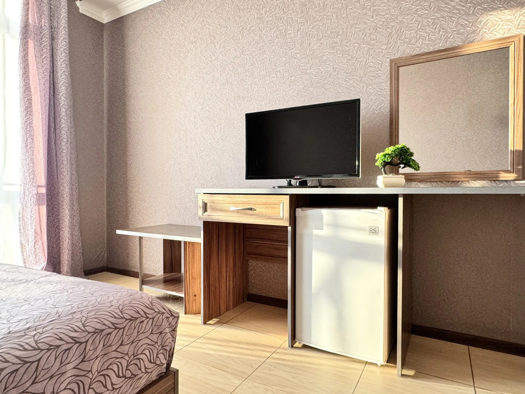 В номере вы найдёте телевизор. Перечисленные услуги есть не во всех номерах.