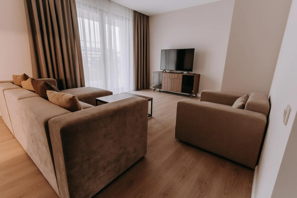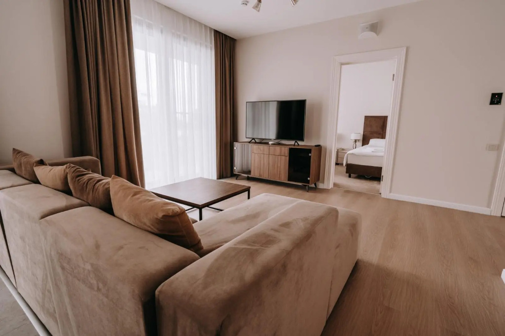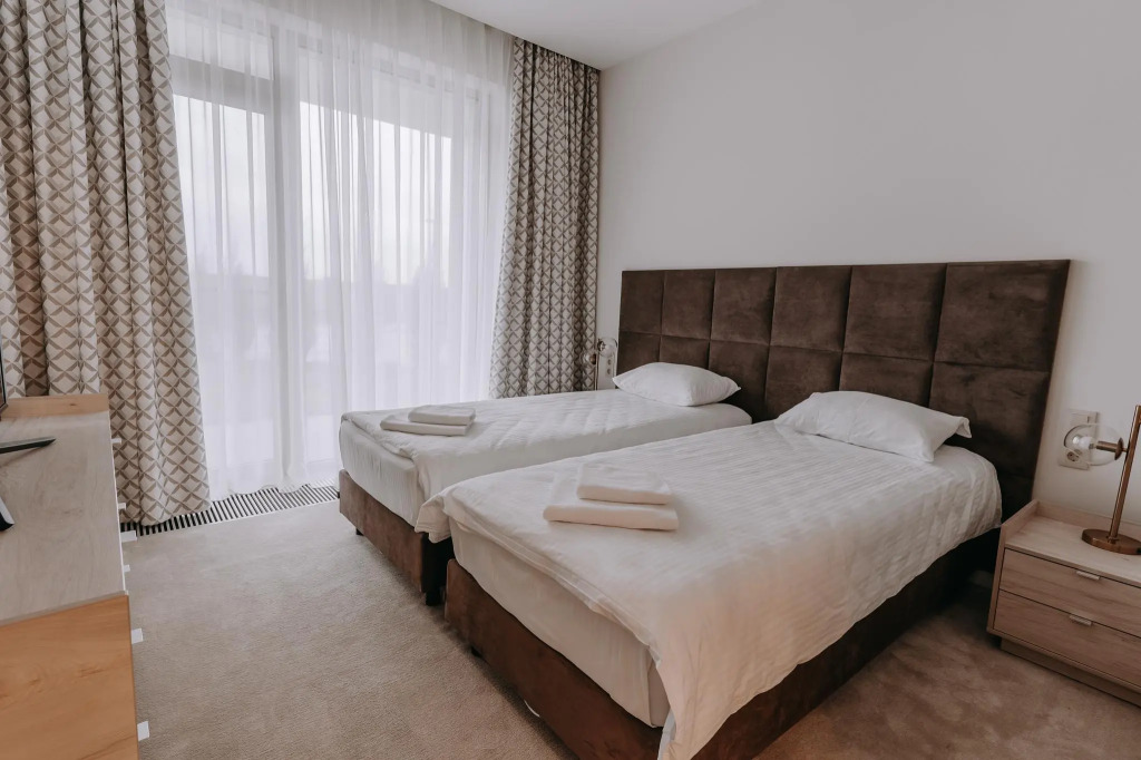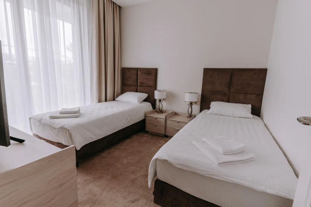 В апартаментах и номерах есть балконы, посуда и косметические принадлежности, техника и сплит-системы.
