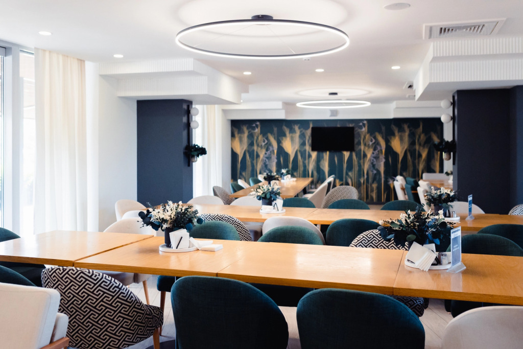 Работают два конференц-зала с отдельными переговорными комнатами. Конференц-зал вместимостью до 100 человек и площадью 159 кв. м. имеет следующее оснащение: Wi-Fi, система климат-контроля, организация питания для участников (кофе-брейк, фуршет, банкет, бизнес-ланч), отдельный гардероб, отдельный вход, парковка, охраняемая территория, размещение участников в отеле и различные варианты рассадки гостей. Предоставляется возможность информационной и рекламной поддержки мероприятия, а также услуги специалистов, способных сопровождать мероприятие и курировать возникающие технические вопросы. Арендовать предлагаемые залы возможно как для разовых, так и для постоянных мероприятий.