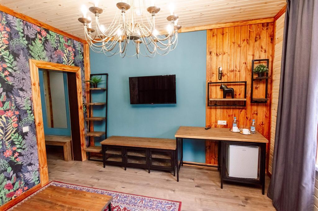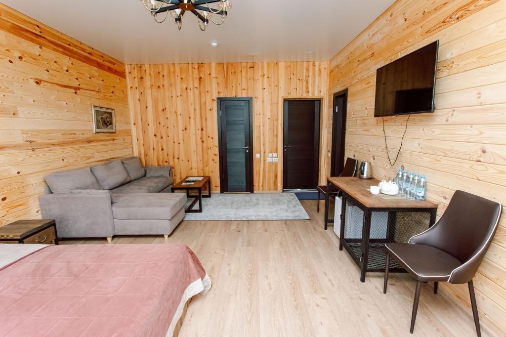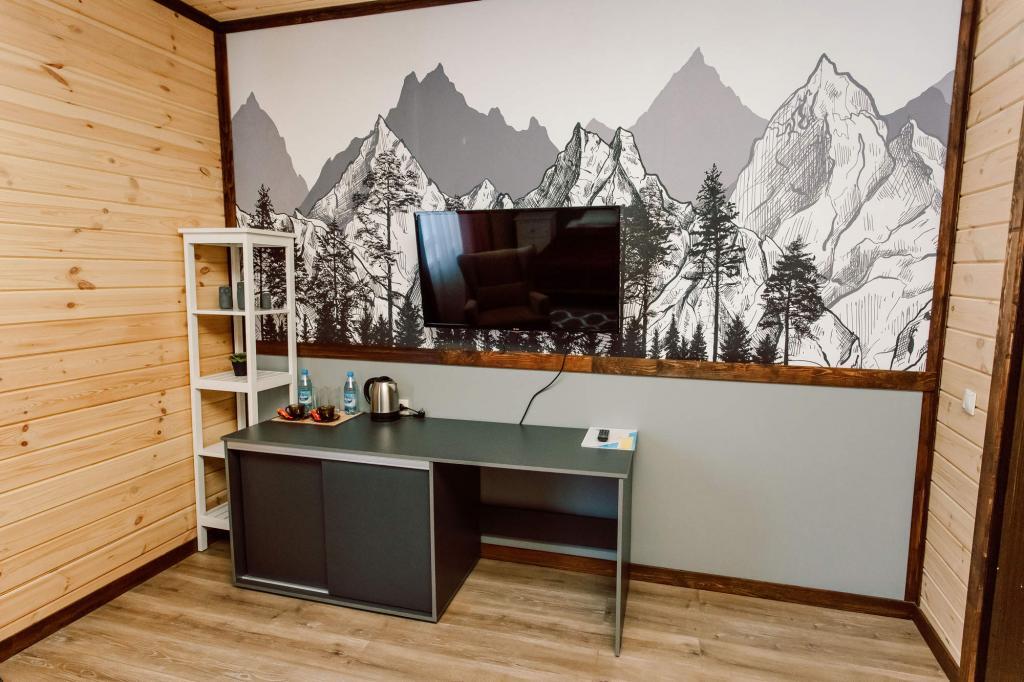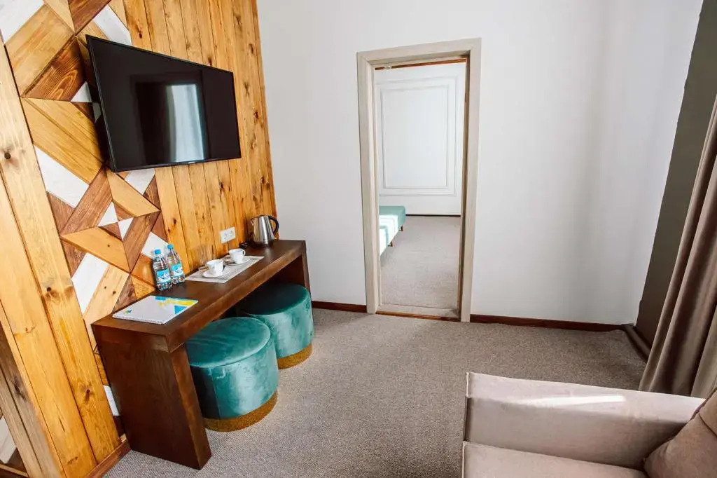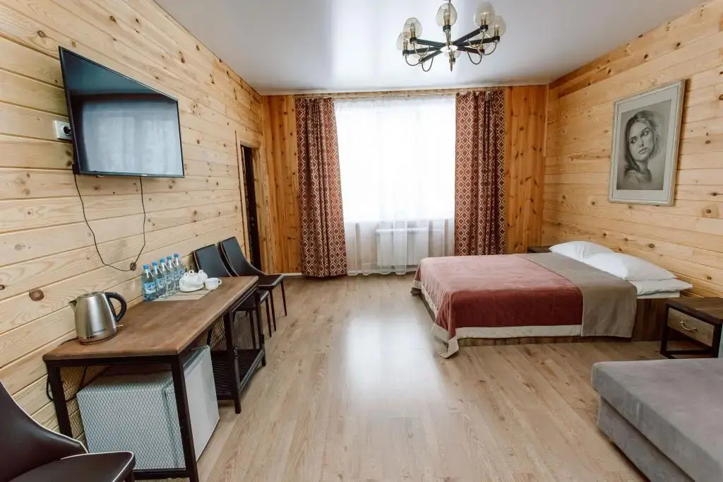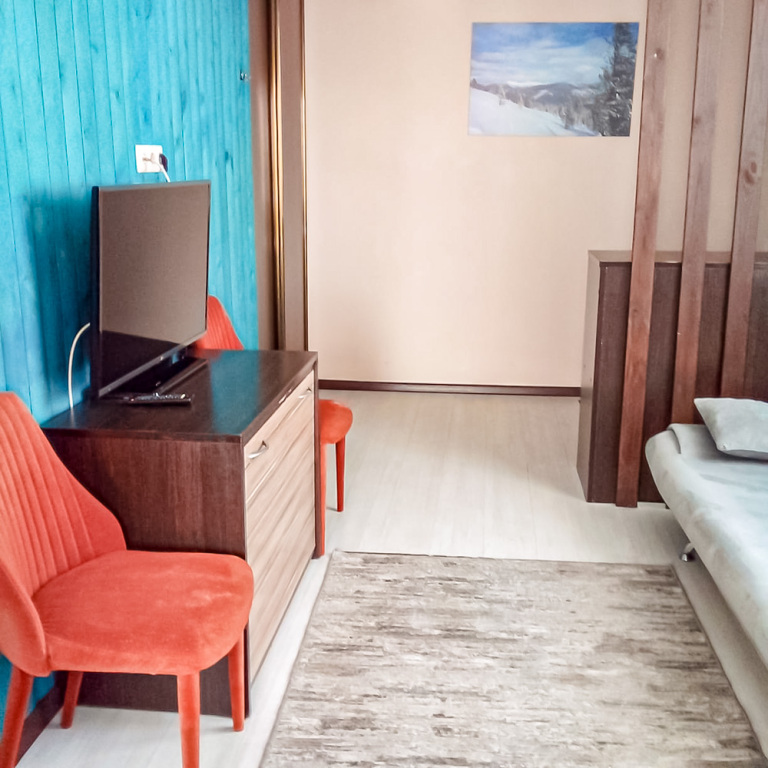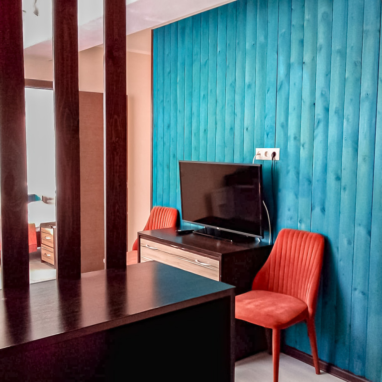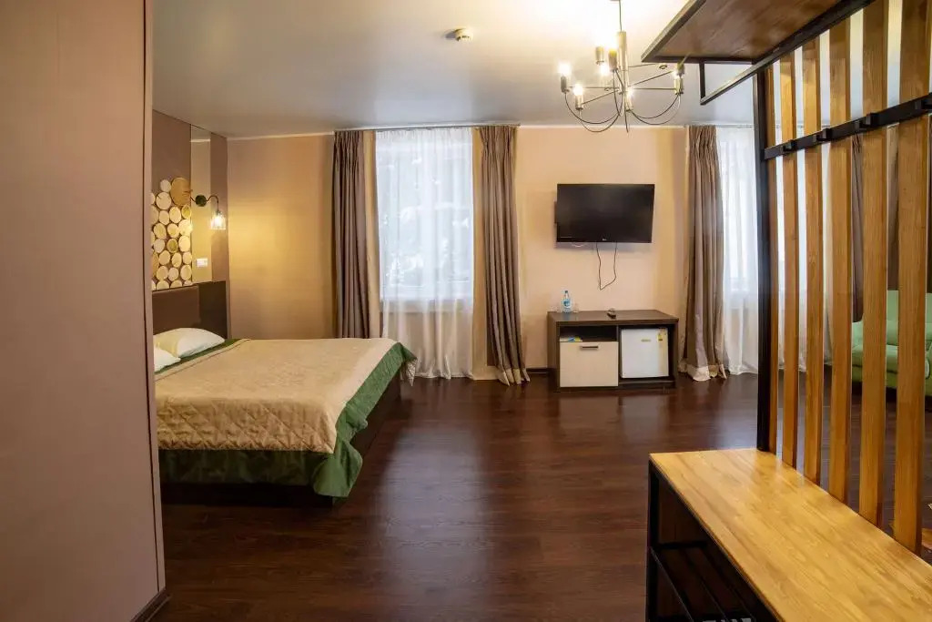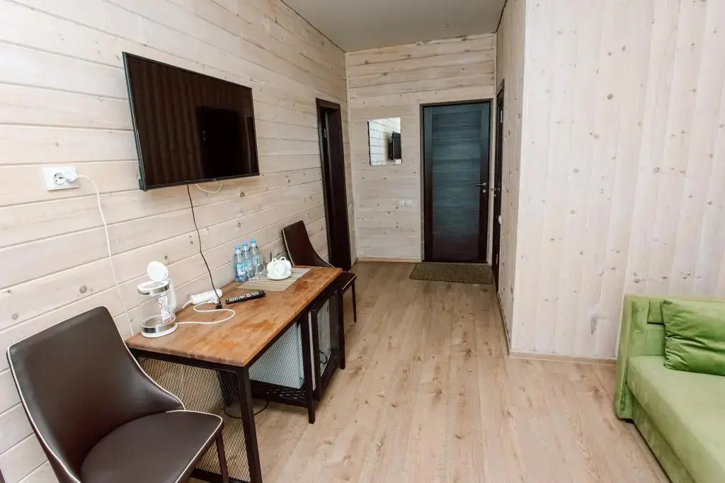В номере вы найдёте телевизор. Оснащение зависит от выбранной категории номера.