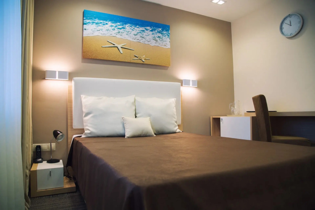 Номер уютно обставлен и оснащён необходимым, чтобы отдохнуть после долгого и насыщенного дня. Имеются телевизор и халат. Перечисленные услуги есть не во всех номерах.