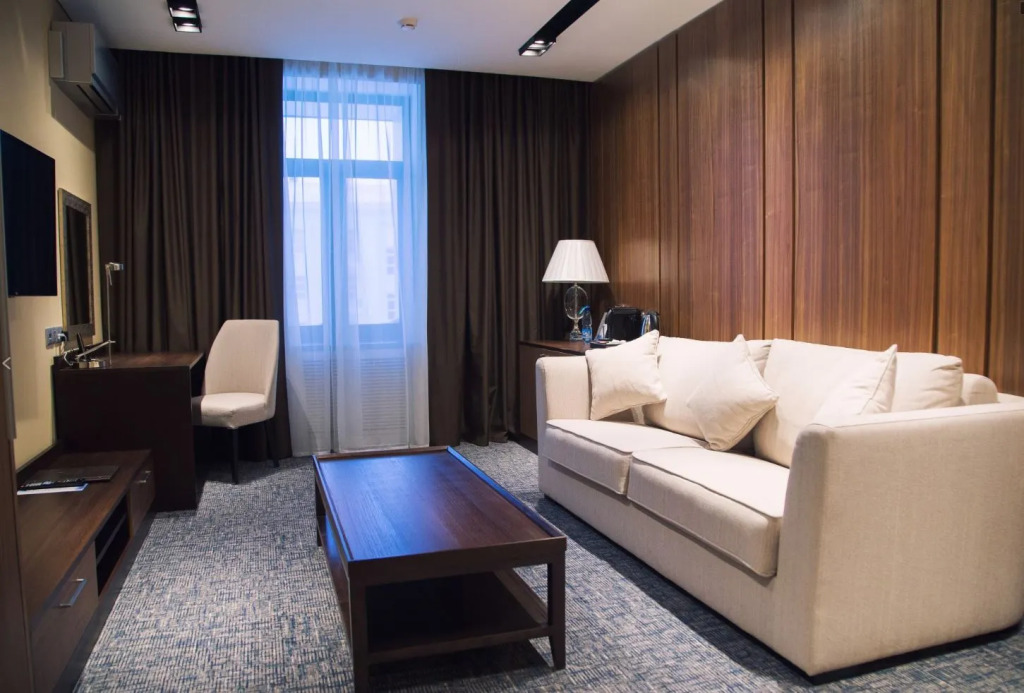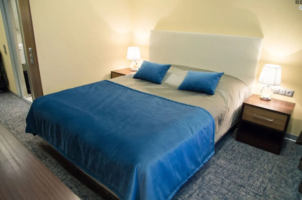 Номер уютно обставлен и оснащён необходимым, чтобы отдохнуть после долгого и насыщенного дня. Имеются телевизор. Оснащение зависит от выбранной категории номера.