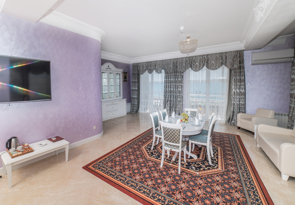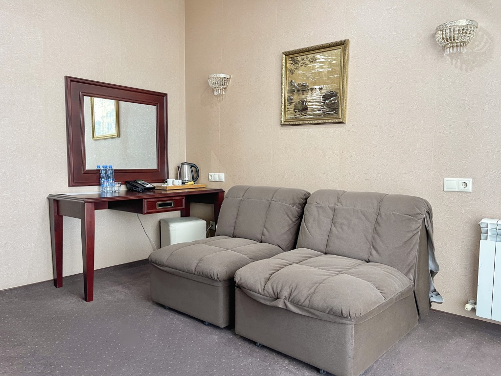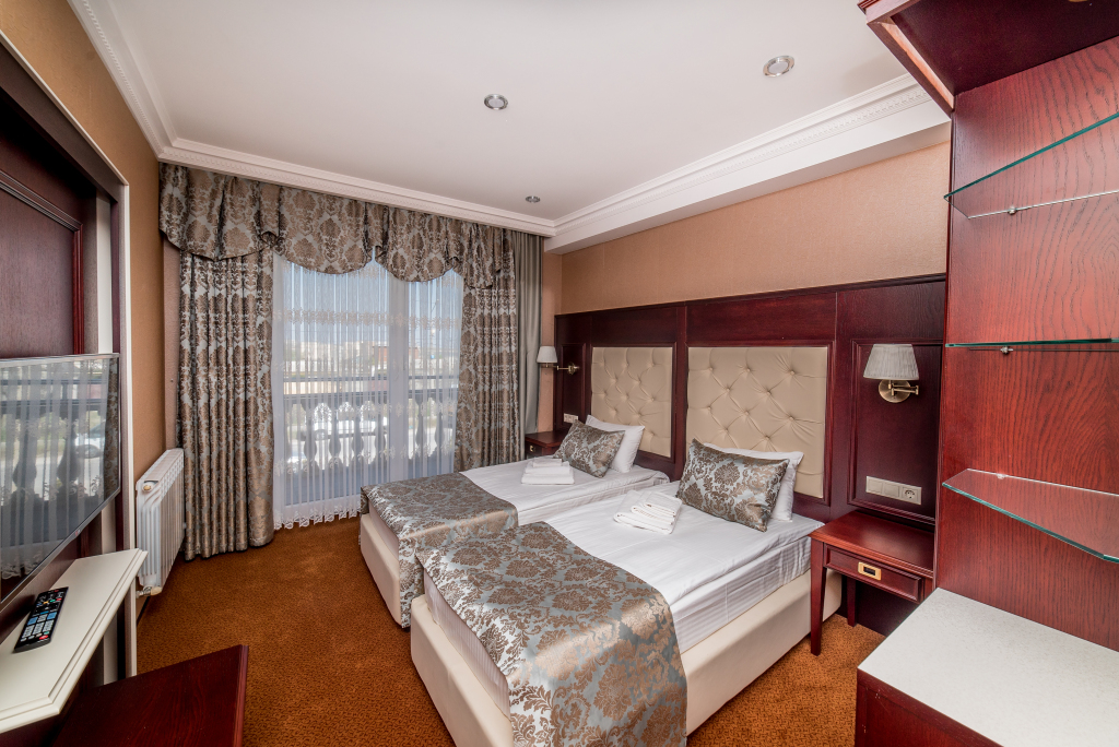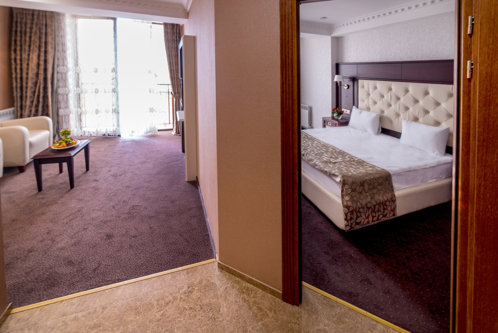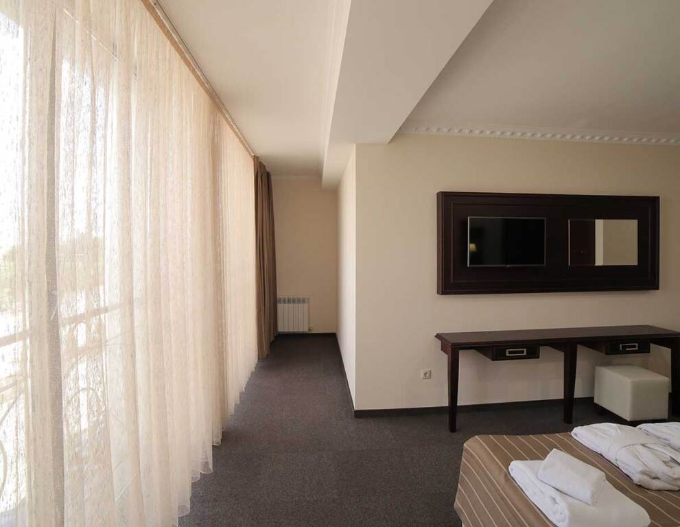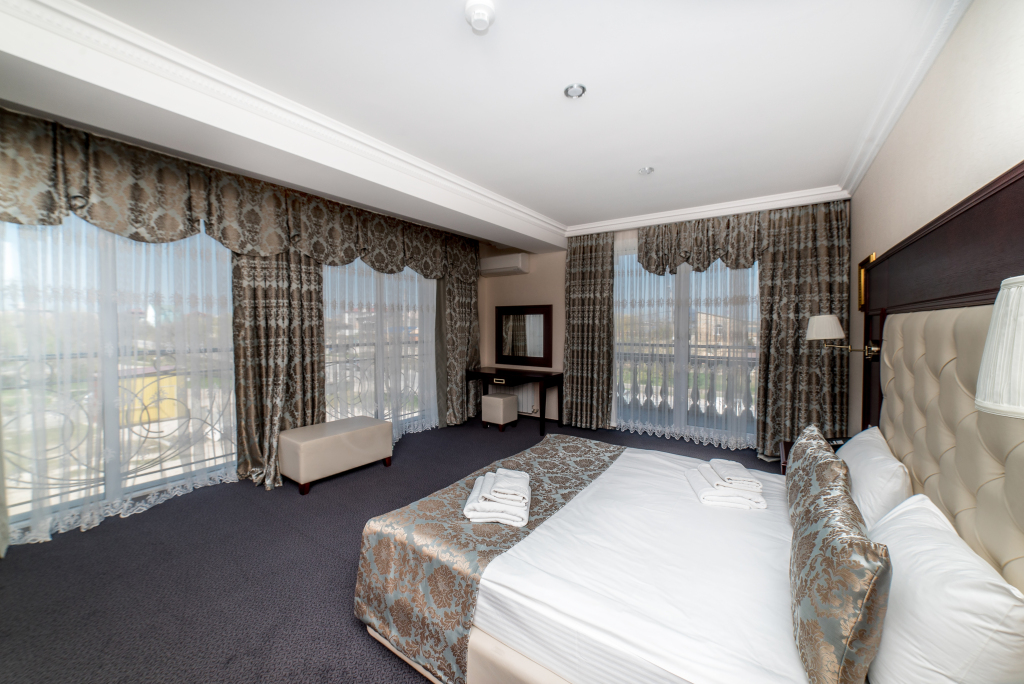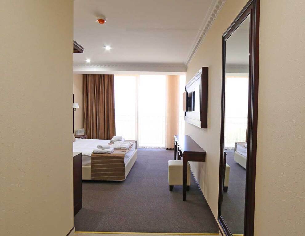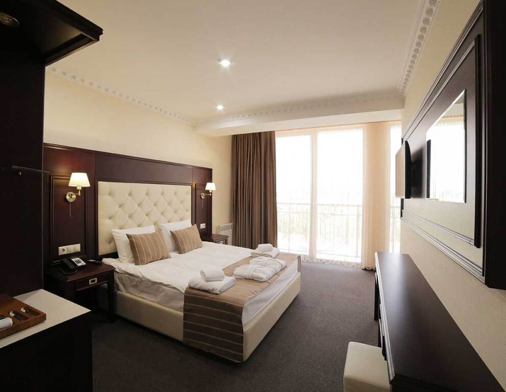 Чтобы вы могли отдохнуть после долгого дня, в номере есть телевизор, мини-бар, халат и тапочки. Оснащение зависит от выбранной категории номера.