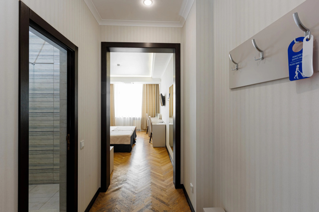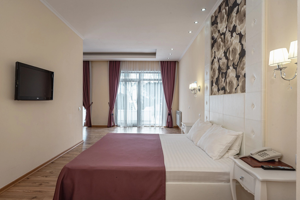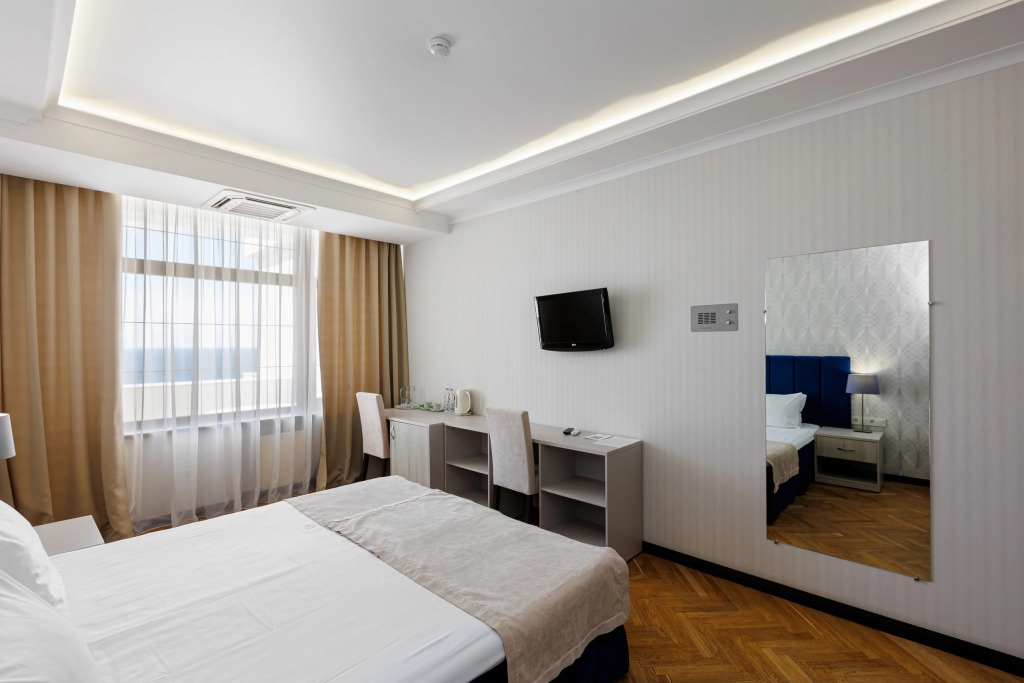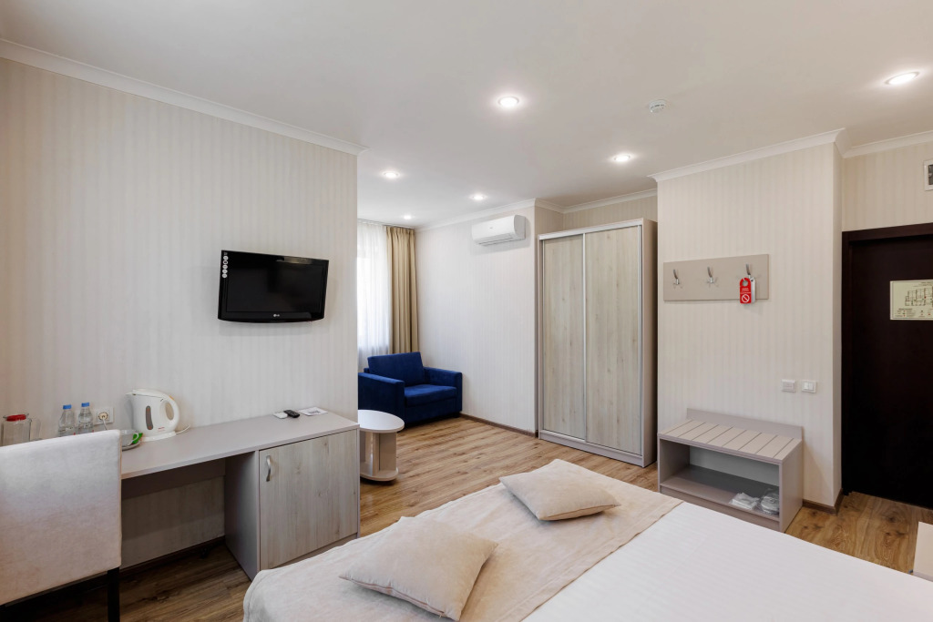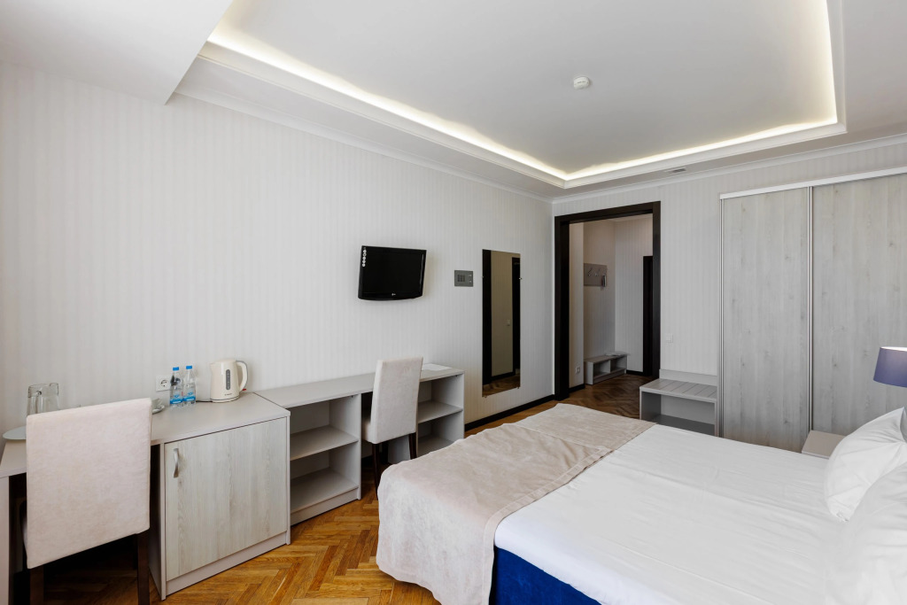 В номере вас будут ждать халат. Оснащение зависит от выбранной категории номера.