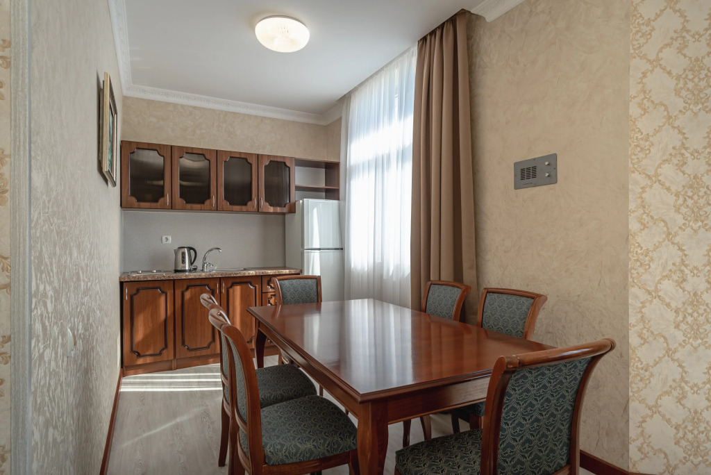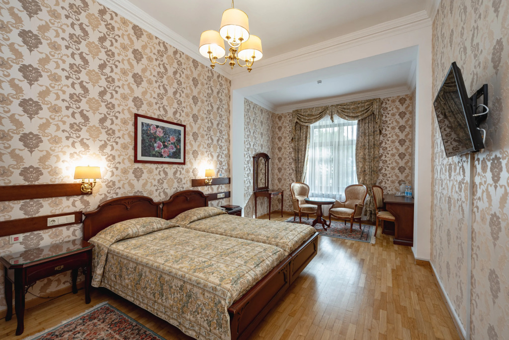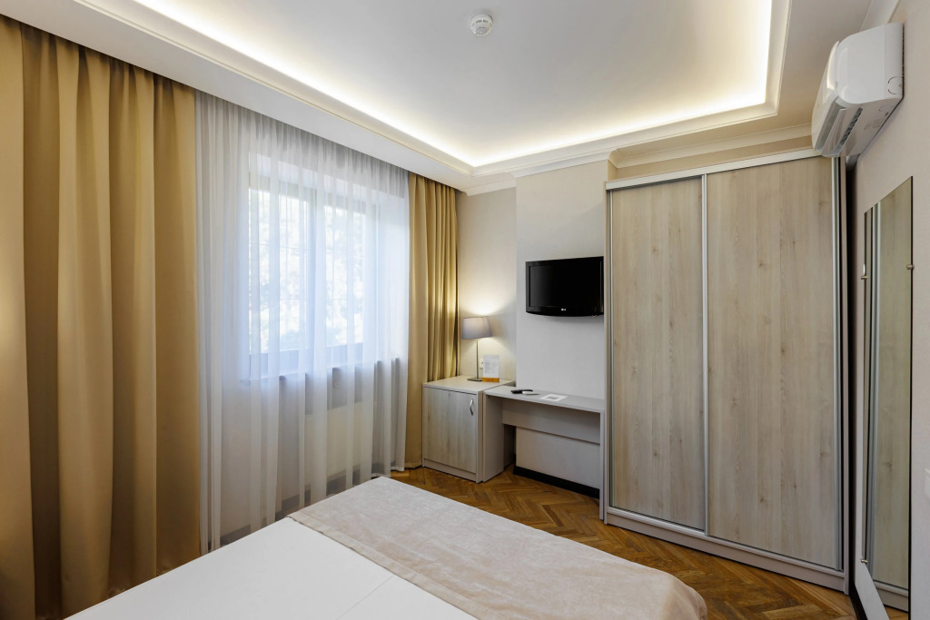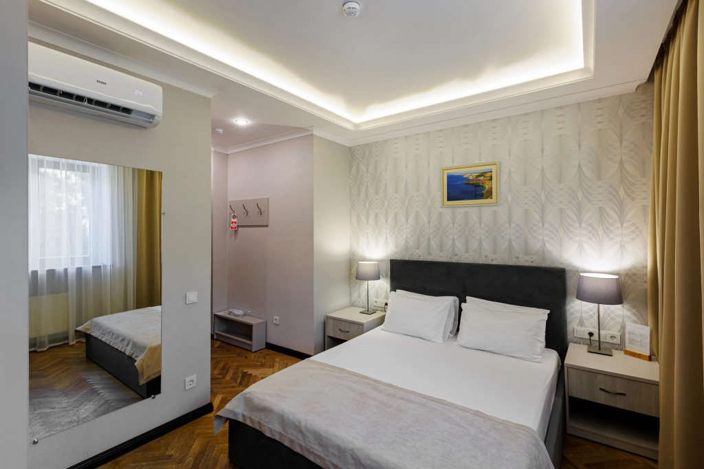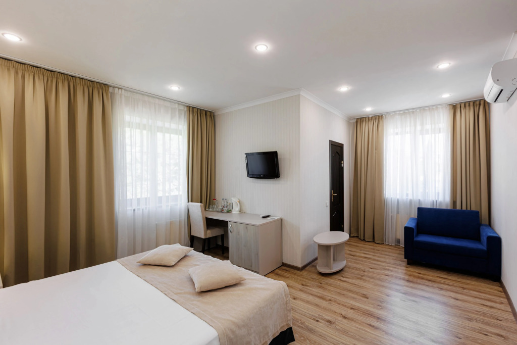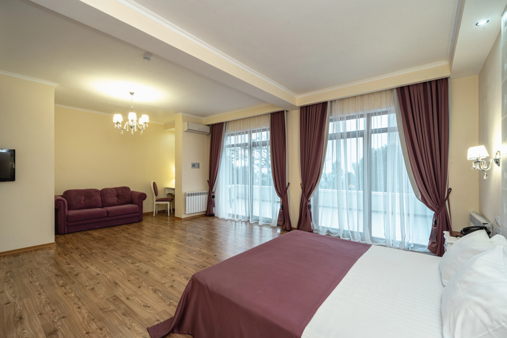 В номере вас будут ждать халат. Оснащение зависит от выбранной категории номера.