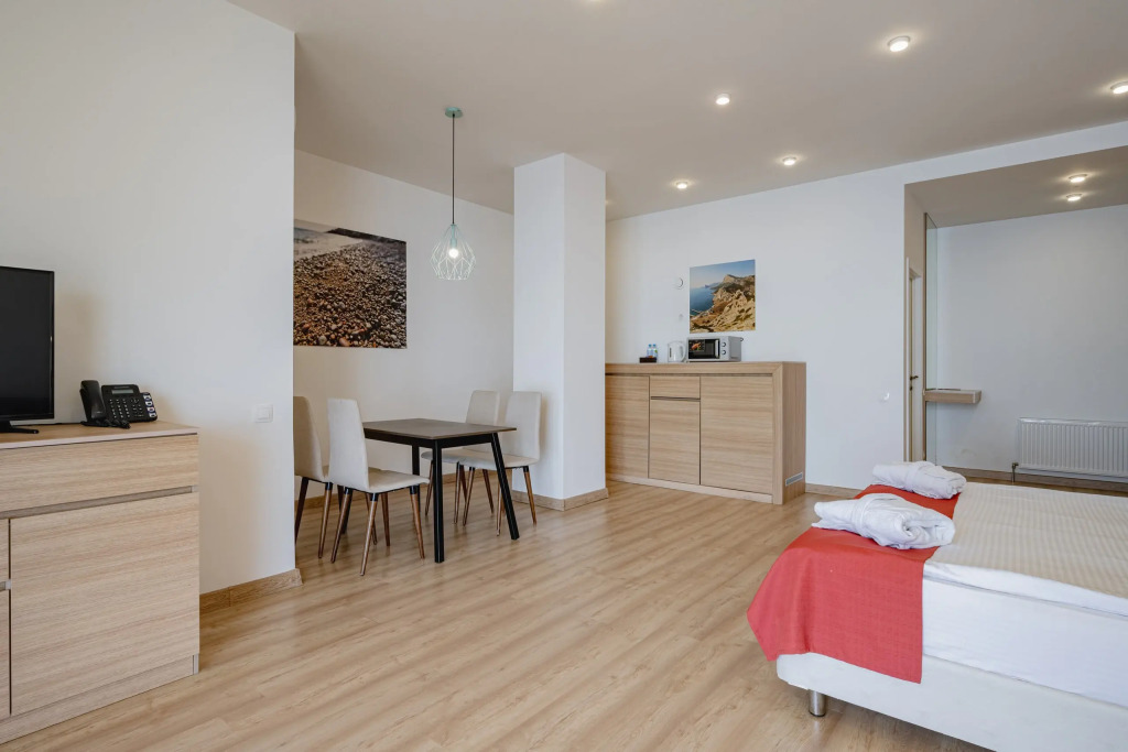 Номерной фонд курортного комплекса состоит из апартаментов таких категорий, как эконом, стандарт, супериор с выходом к бассейну, супериор с лоджией, апартаменты с видом на море и горы, двухкомнатные апартаменты и другие категории. Многие номера оснащены кухонной зоной и подходят для проживания как семейных пар с детьми, так и молодоженов.