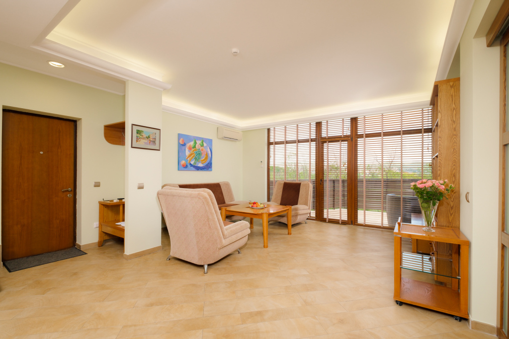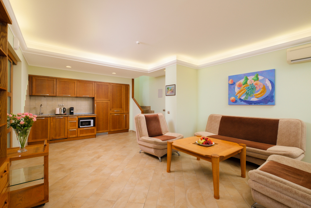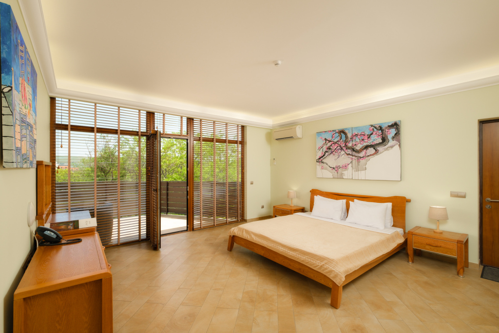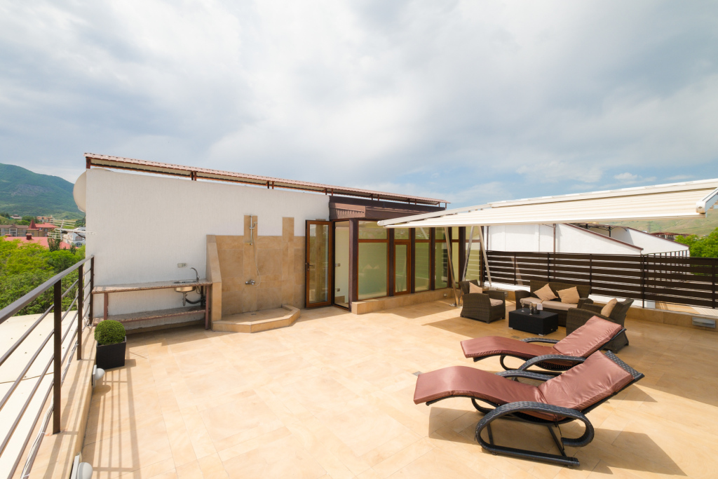 В номерах есть кухни и балкон. В каждом номере установлен сейф для хранения ценных вещей. В номерах категории «Люкс» на крыше оборудована собственная терраса с видом на Коктебельскую бухту или вулкан Кара-Даг.