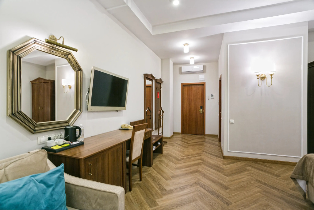 В номере вас будут ждать телевизор и халат. Перечисленные услуги есть не во всех номерах.