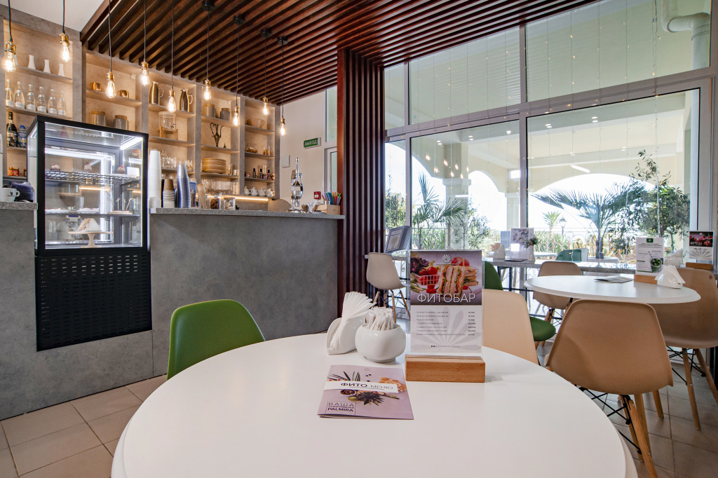 Для гостей работает бар. Попробовать новые блюда и отдохнуть можно в ресторане. Для любителей кофе и перекусов открыто кафе. Гости могут выбирать между полным пансионом и полупансионом.