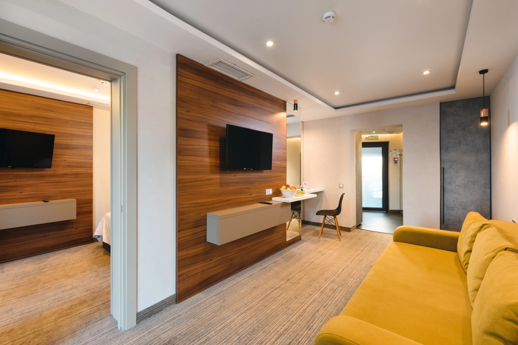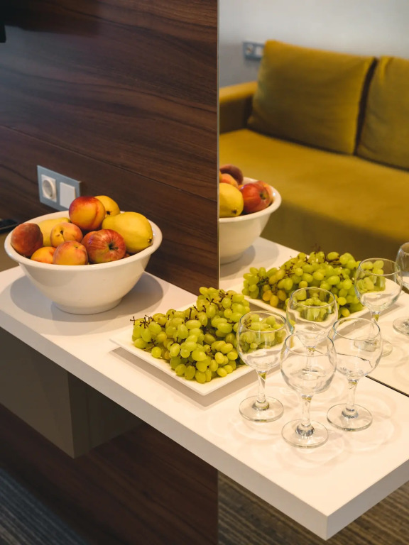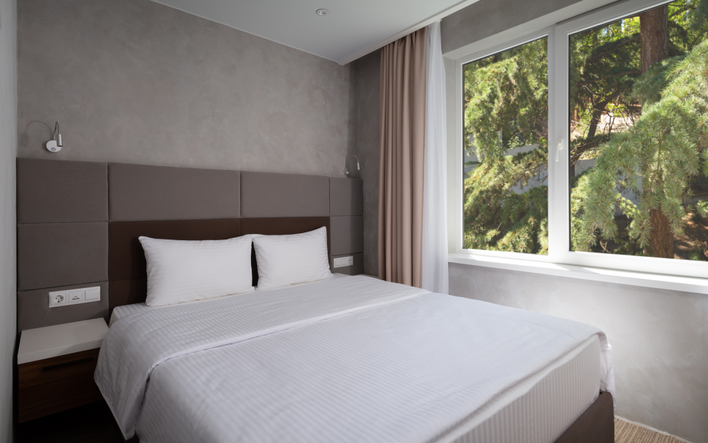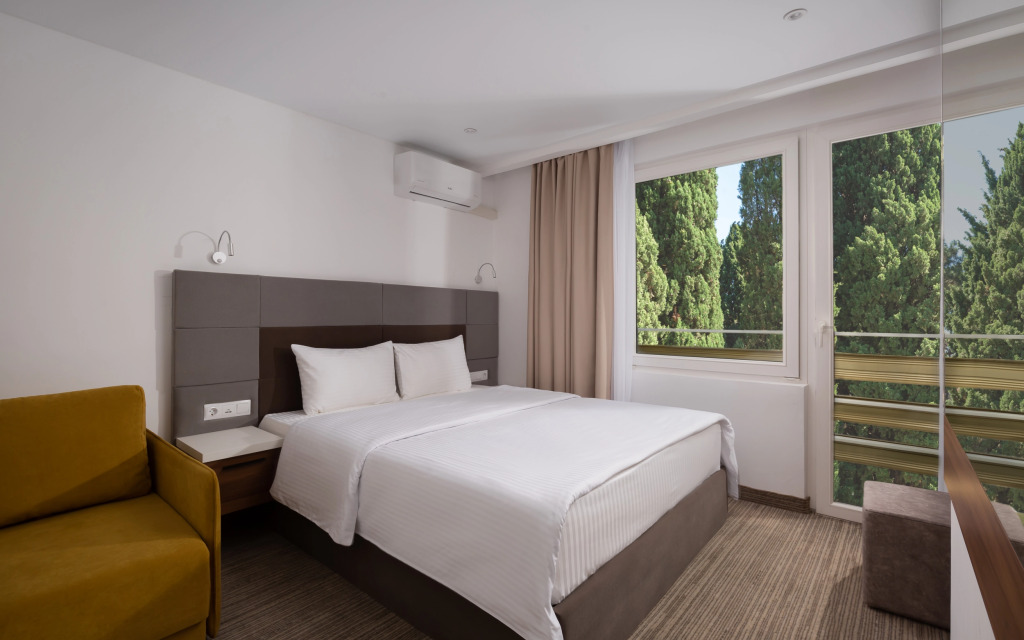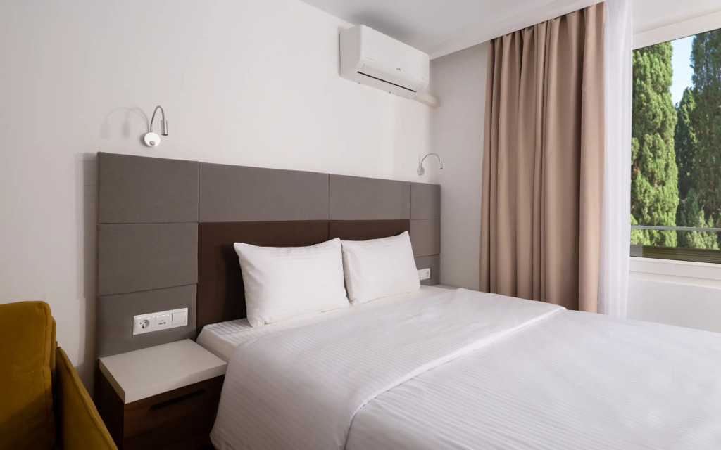 Номер уютно обставлен и оснащён необходимым, чтобы отдохнуть после долгого и насыщенного дня. Имеются телевизор и мини-бар. Оснащение зависит от выбранной категории номера.