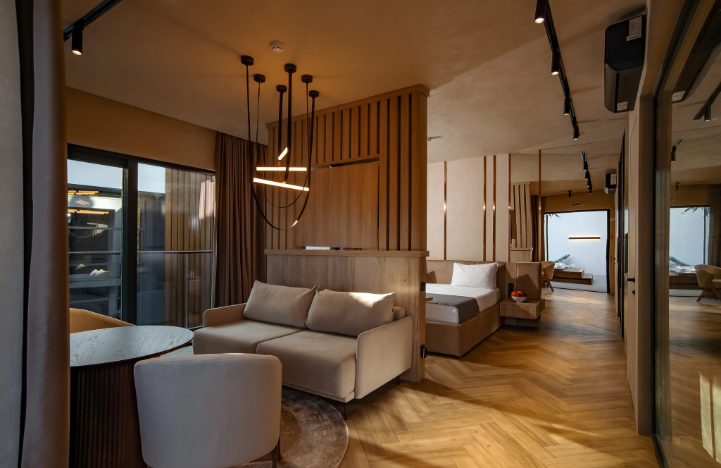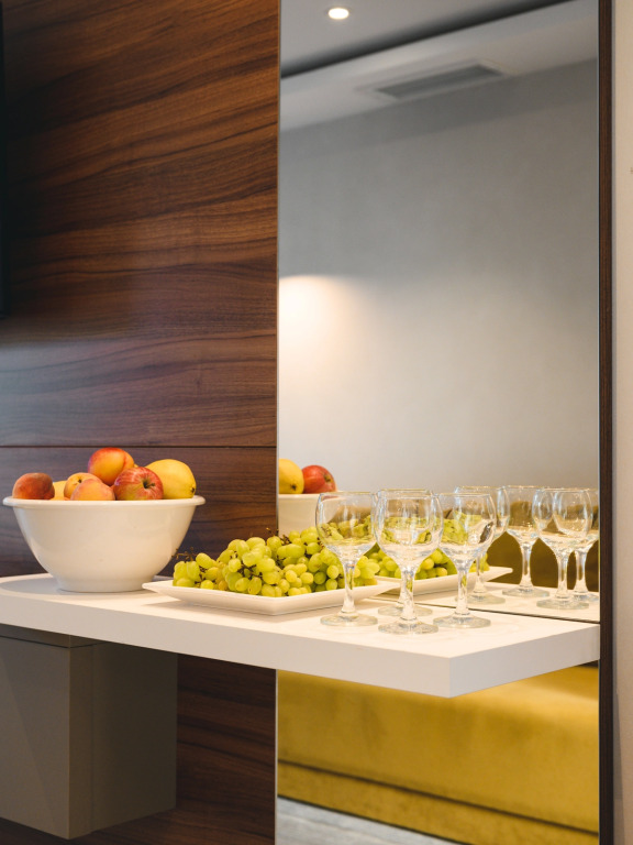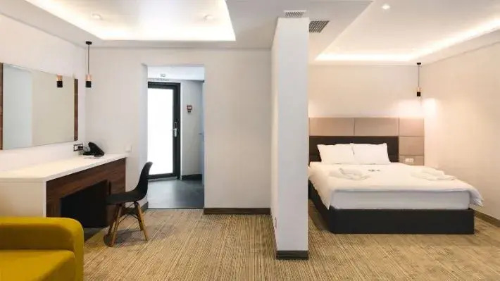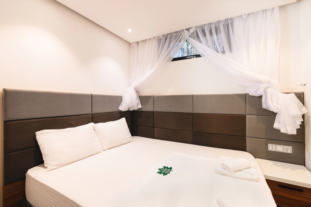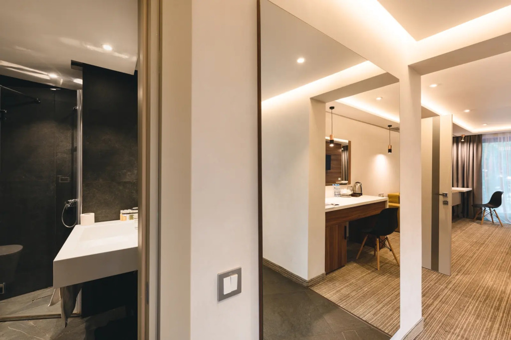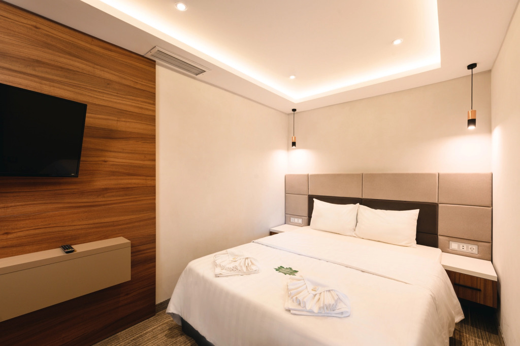 Номер уютно обставлен и оснащён необходимым, чтобы отдохнуть после долгого и насыщенного дня. Имеются телевизор и мини-бар. Оснащение зависит от выбранной категории номера.