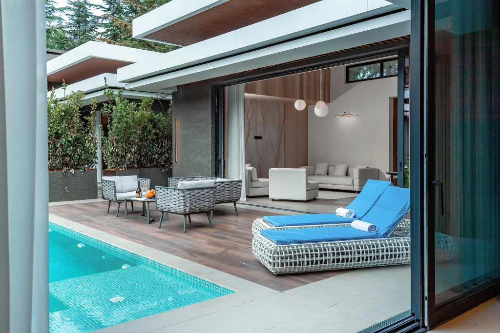 Среди услуг для красоты и здоровья — массажный кабинет, сауна, баня и хамам. Специально к услугам гостей, не упускающих возможность заняться спортом, настольный теннис. Среди развлечений на территории — караоке и развлекательные мероприятия. Здесь будем баловать себя водными процедурами: есть бассейн и открытый бассейн.