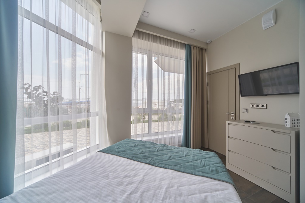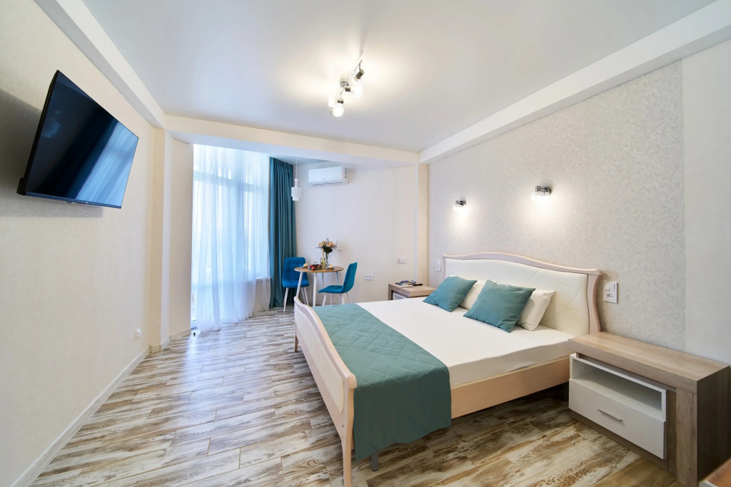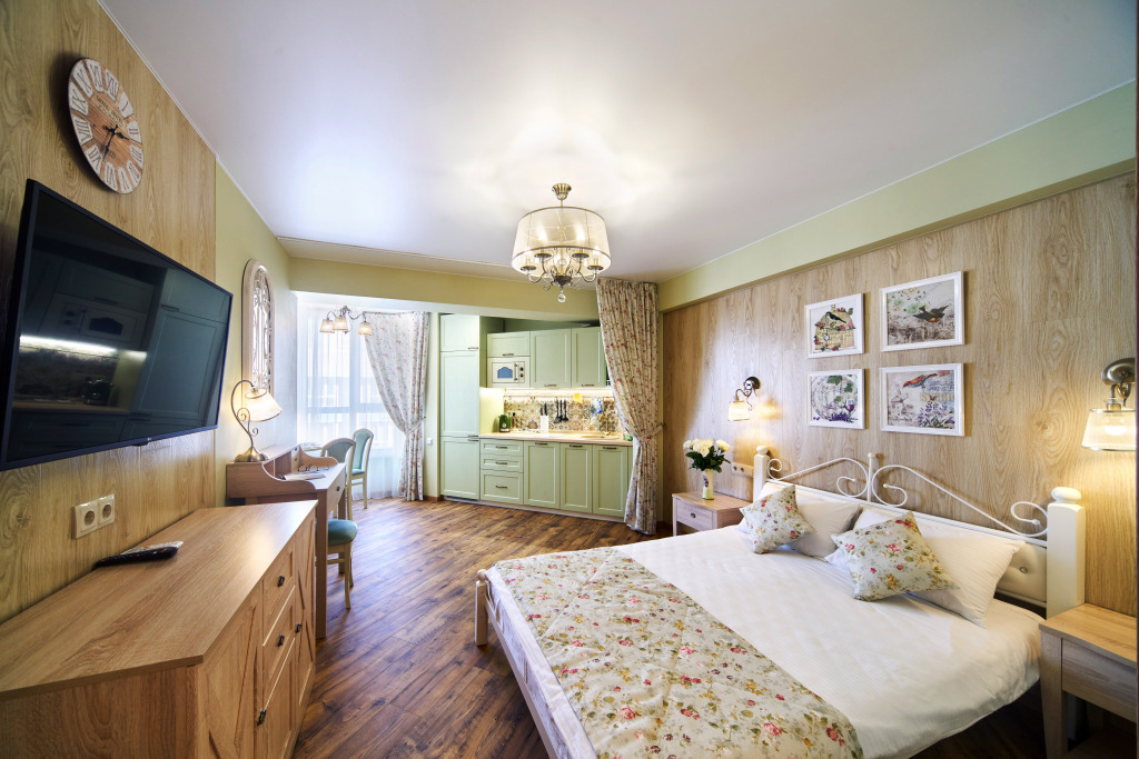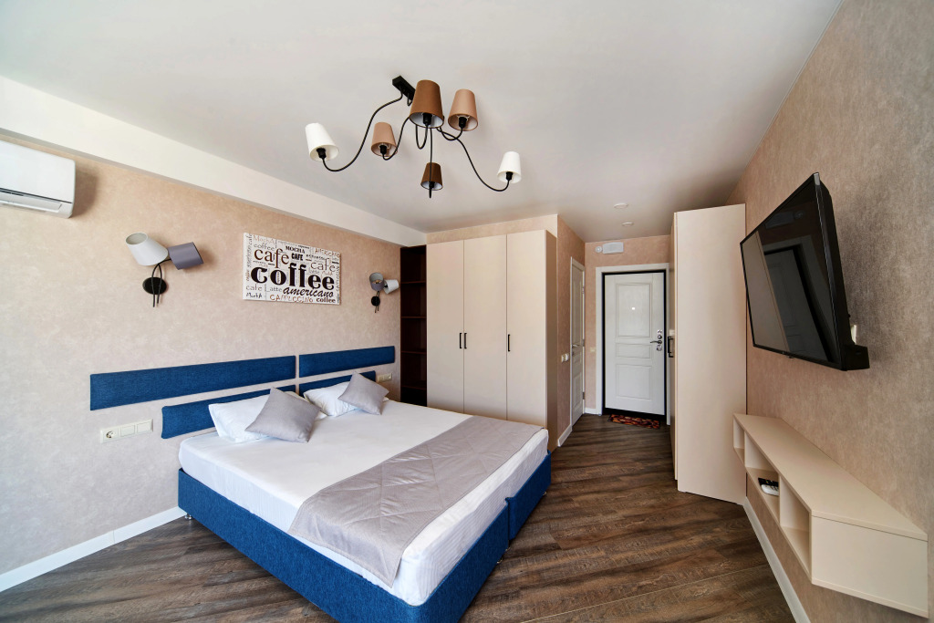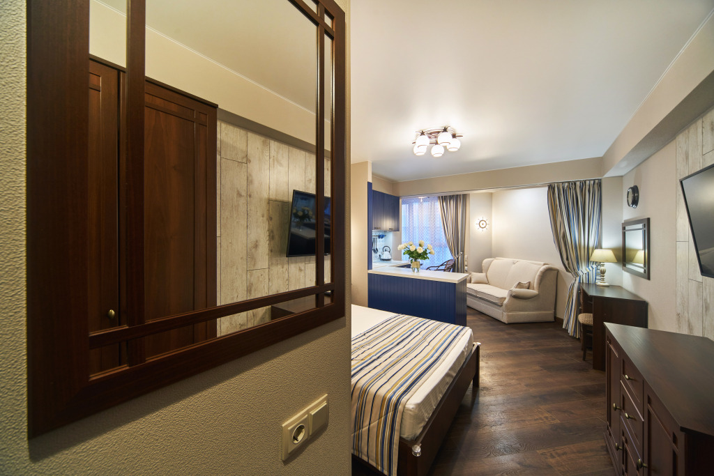 Чтобы вы могли отдохнуть после долгого дня, в номере есть телевизор и халат. Перечисленные услуги есть не во всех номерах.