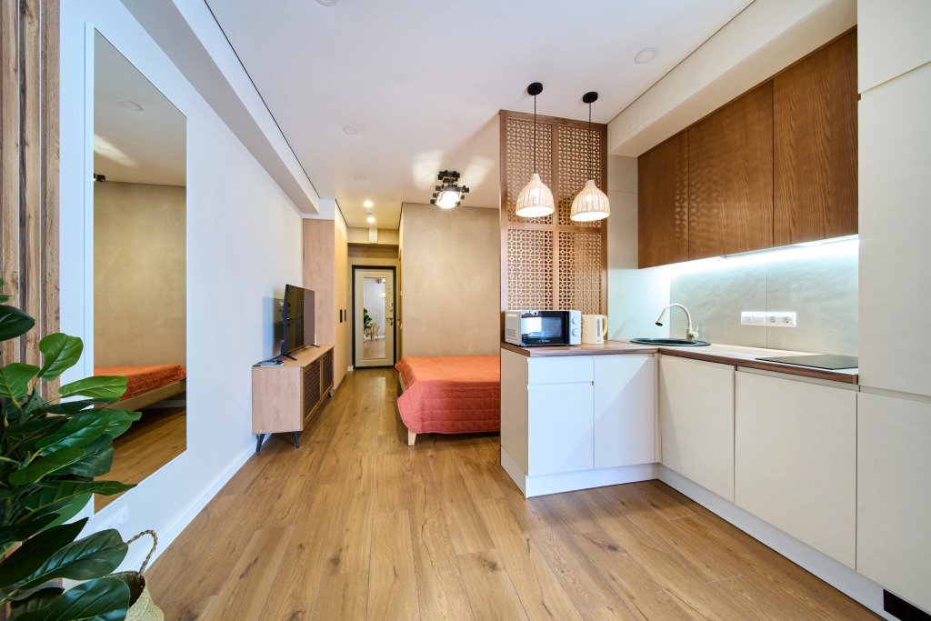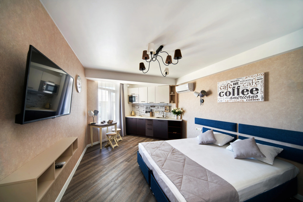 А ещё в распоряжении гостей индивидуальная регистрация заезда и отъезда и гладильные услуги. Сотрудники апарт-отеля поддержат беседу на английском и русском.