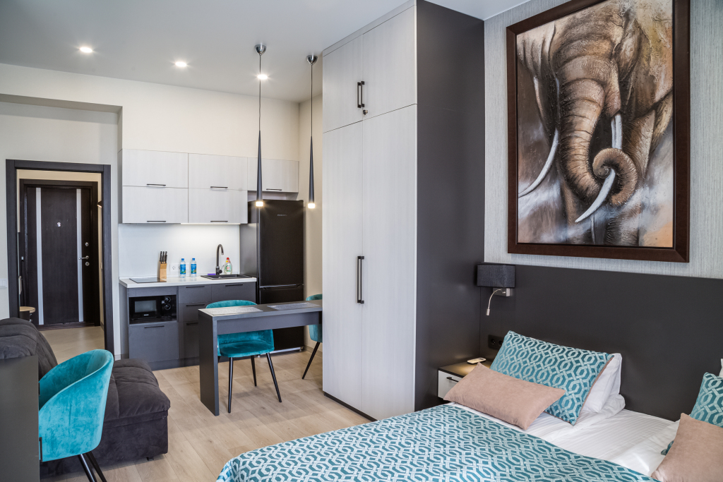Дополнительной кроватью в апартаментах является раскладной диван, либо раскладное кресло.