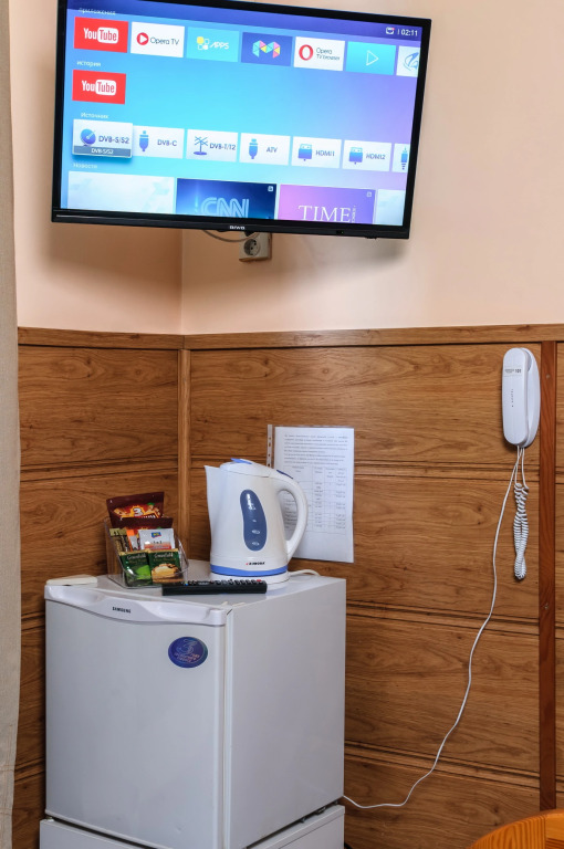 Для развлечения есть смарт телевизор с возможностью воспроизведения на нем экрана телефона, планшета, ноутбука и возможностью самостоятельного серфинга по интернету радиомышкой с кровати, и просмотра YouTube, фильмов онлайн, игр и прочего.