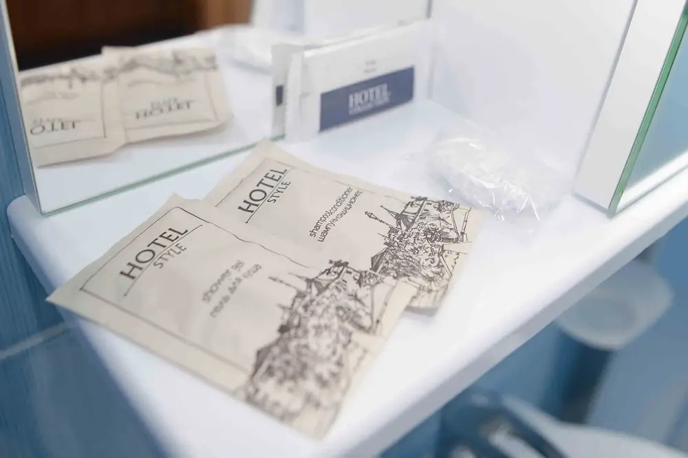 Зайдя в номер с ковровым покрытием, гости получат бутылку питьевой воды, стакан, чашку, чайник, одноразовые тапочки, халат (в категории Комфорт), мыло, шампунь, шапочки для душа, гигиенический душ, одноразовые мочалки, фен, одну из трех скоростных сетей Wi-Fi.
