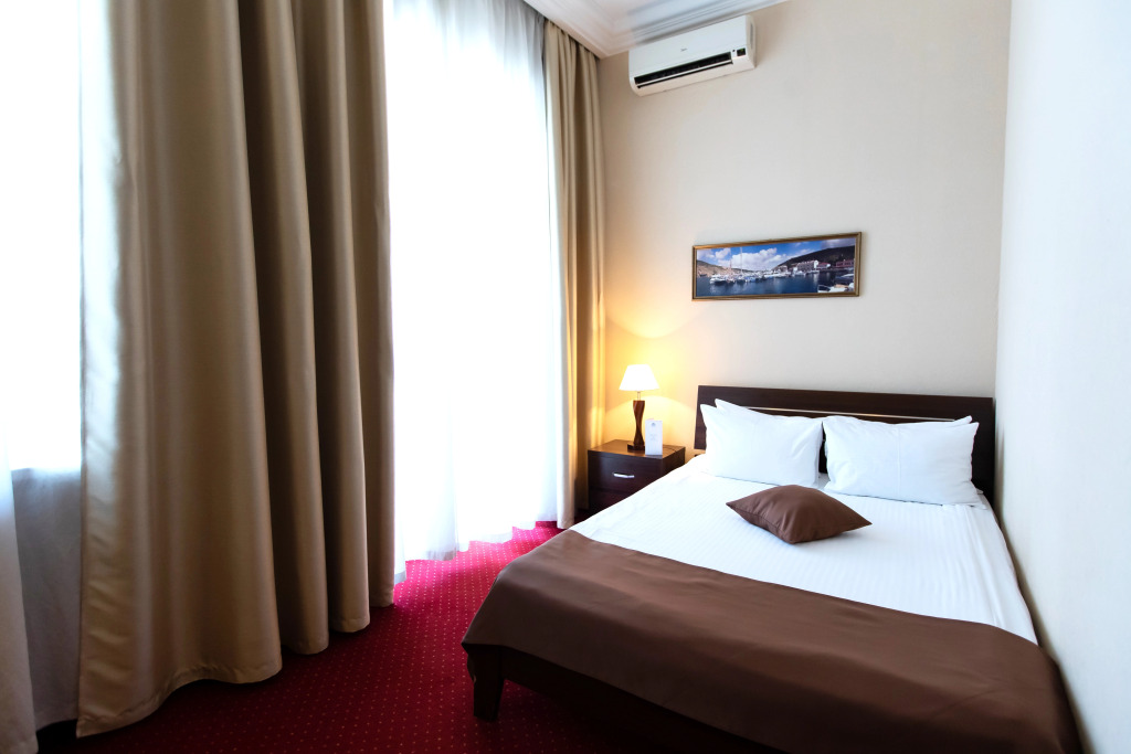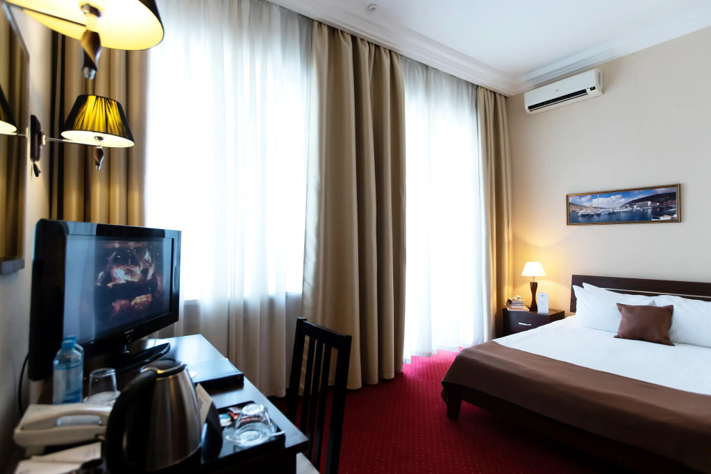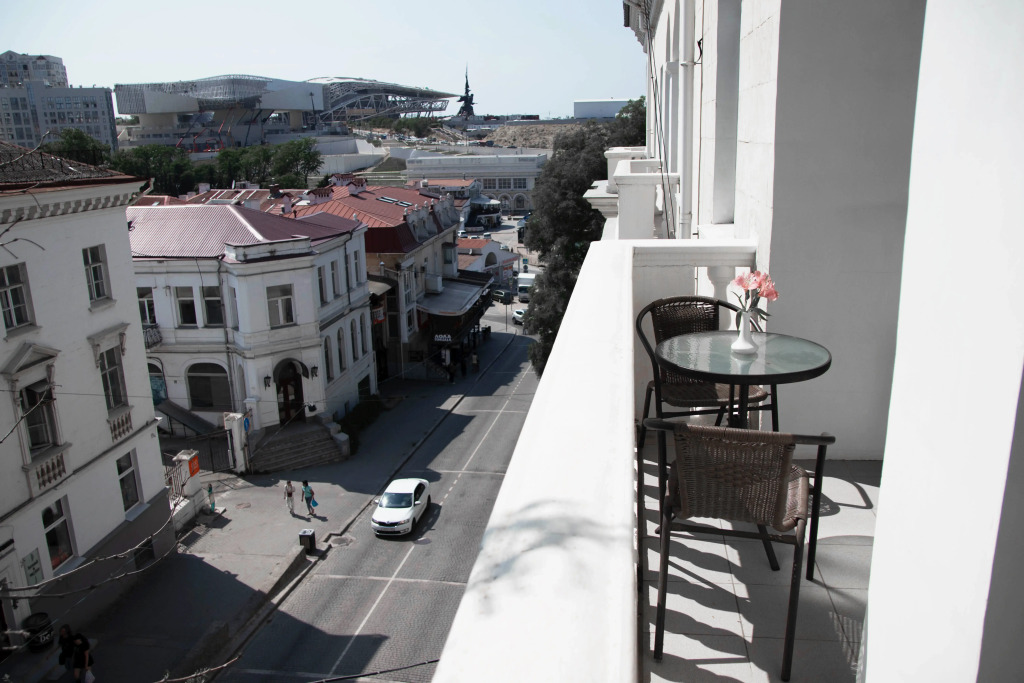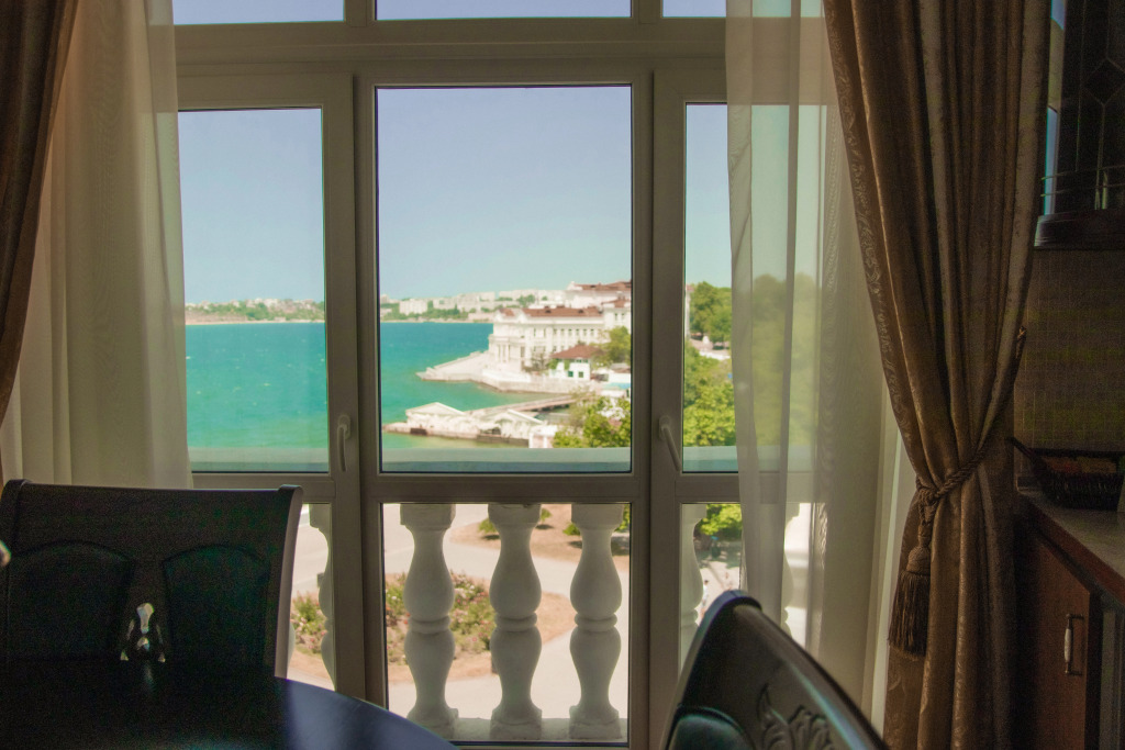 Здание, в котором находится отель — это памятник архитектуры, построенный в 1952 году в стиле неоклассицизма. Фасад отеля выходит на море и позволяет гостям любоваться видами на Севастопольскую бухту.