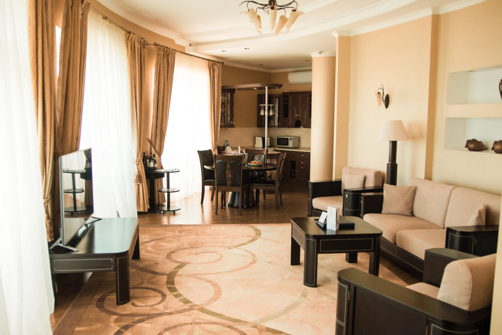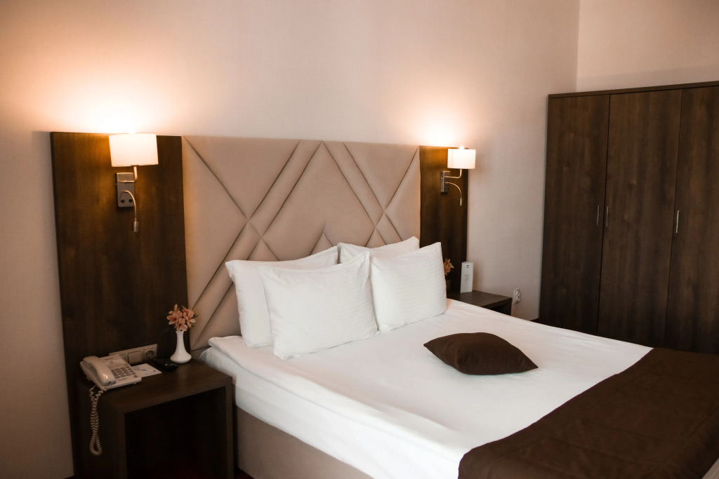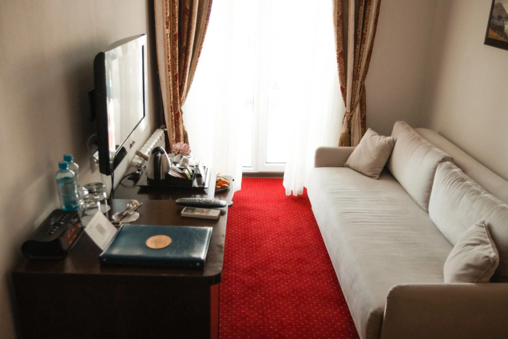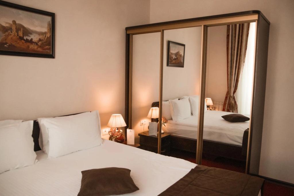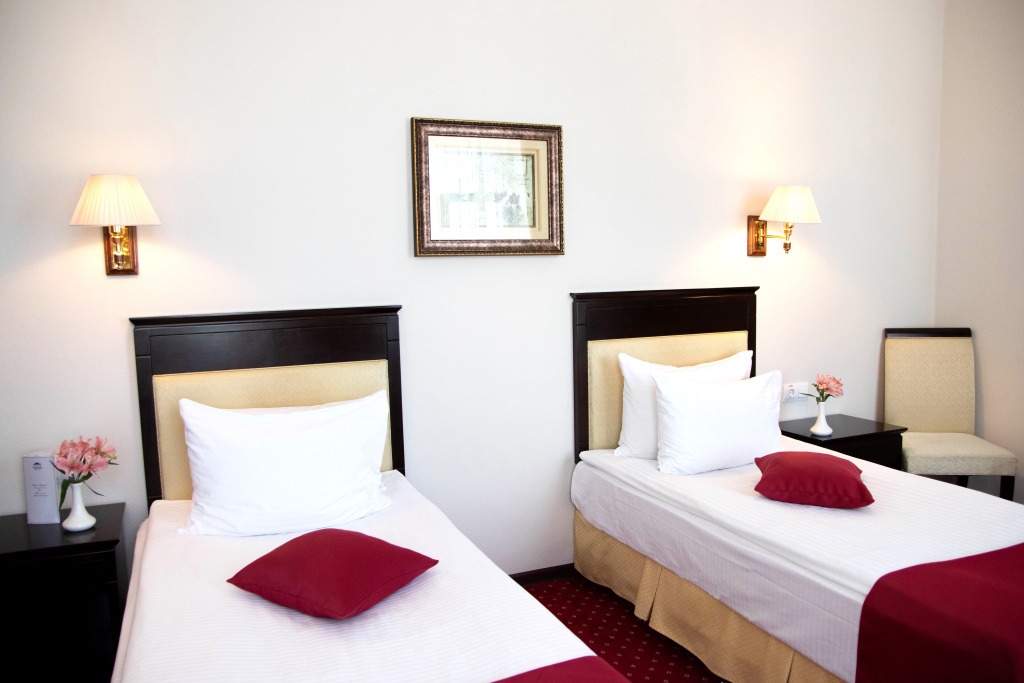 Номерной фонд отеля составляет 107 номеров различных категорий.