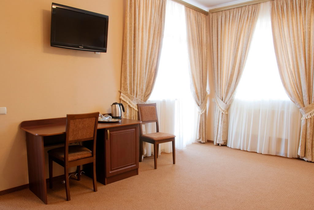 В номере вы найдёте телевизор. Оснащение зависит от выбранной категории номера.