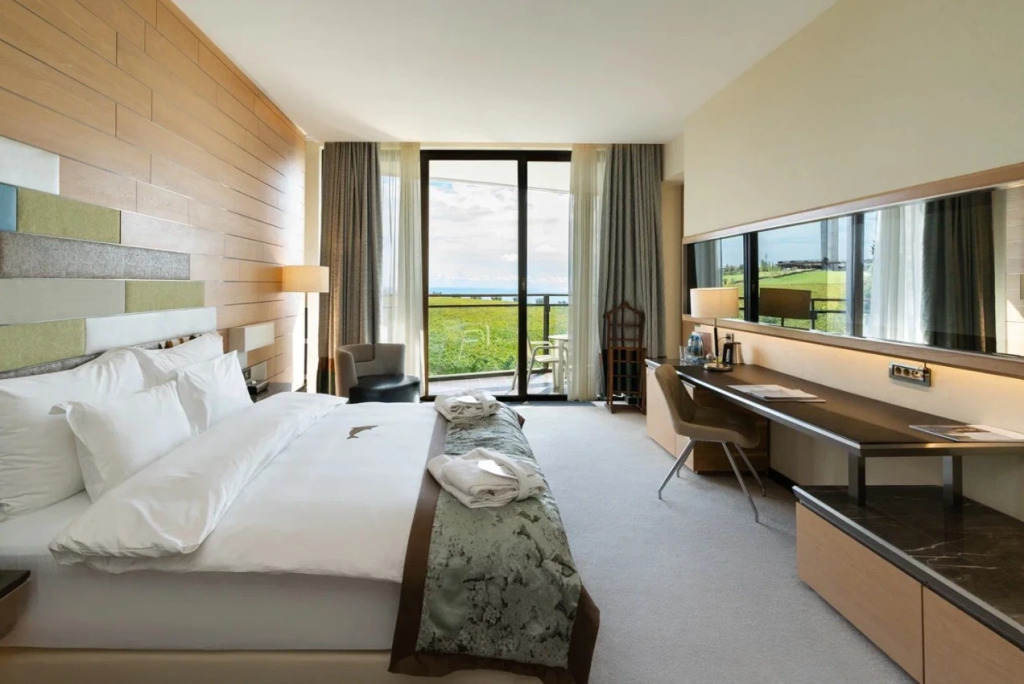 Гостям также доступны следующие услуги: массажный кабинет, сауна, спа-центр, баня, хамам и врач. Специально к услугам гостей, не упускающих возможность заняться спортом, фитнес-центр, тренажёрный зал и йога. Скучно не будет, ведь в отеле к услугам отдыхающих развлекательные мероприятия, библиотека и боулинг. Здесь будем баловать себя водными процедурами: есть крытый бассейн и открытый бассейн.