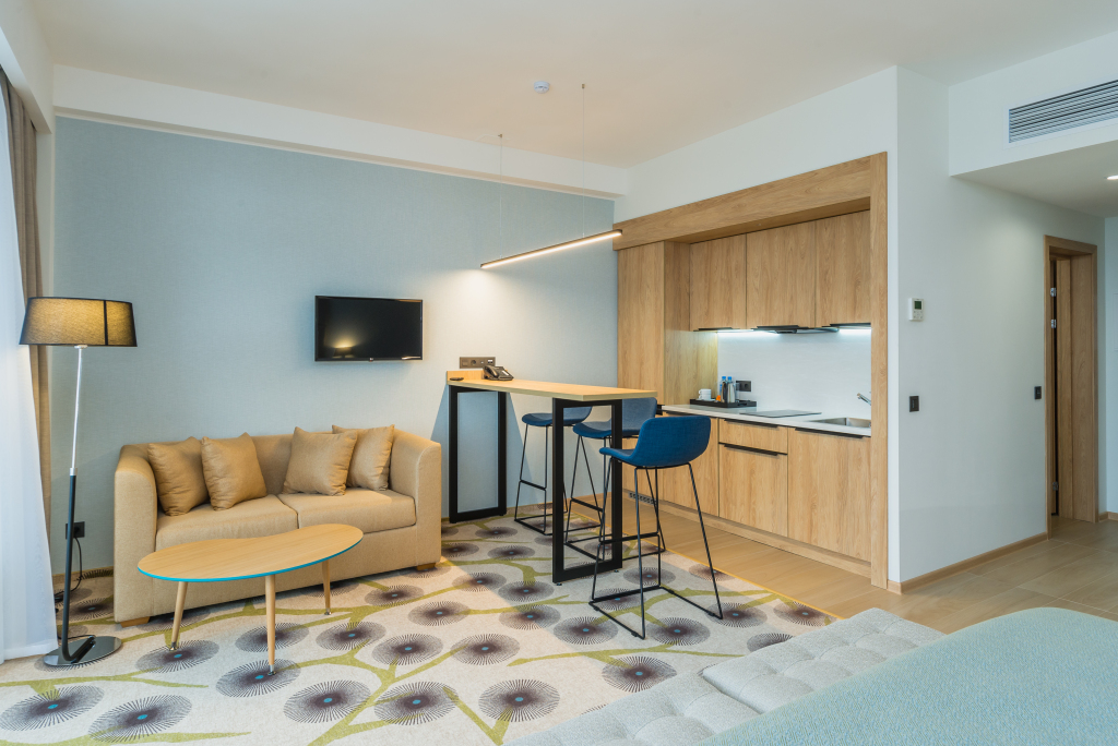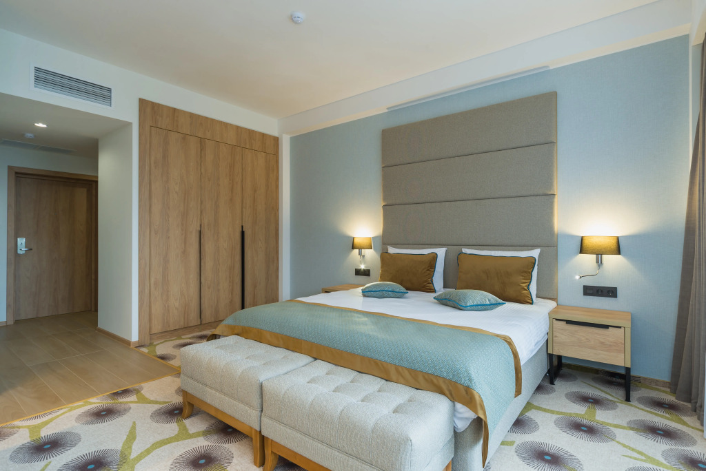 В номерах есть душ, телевизор и мини-бар. Оснащение зависит от выбранной категории номера.