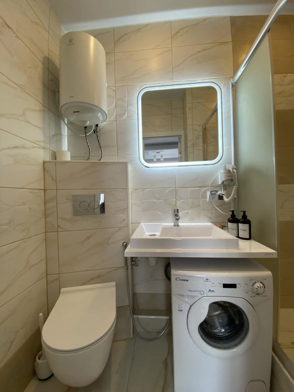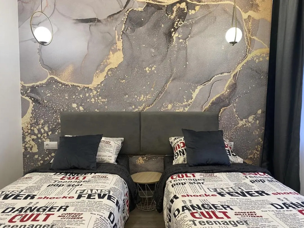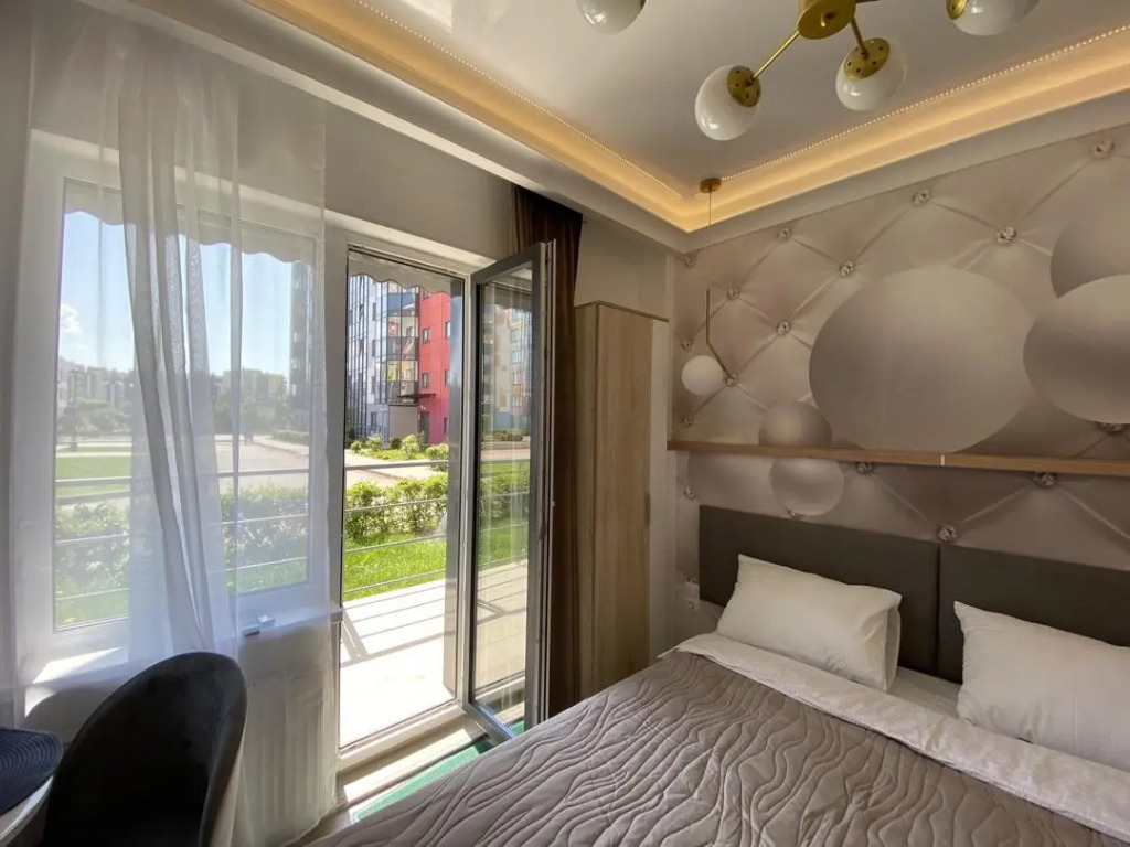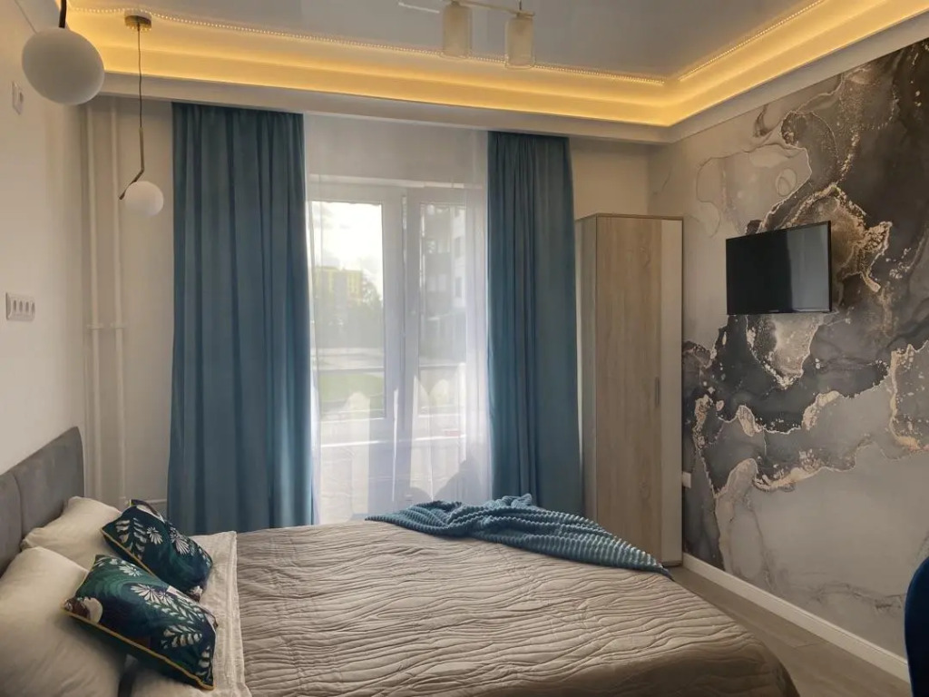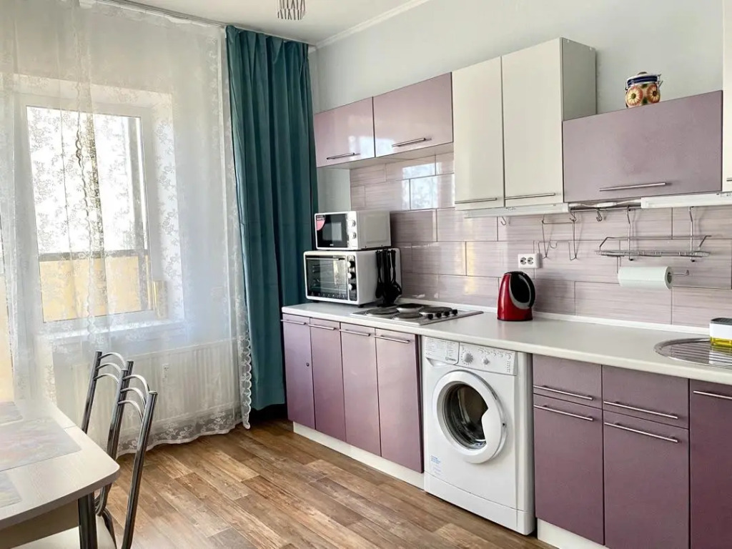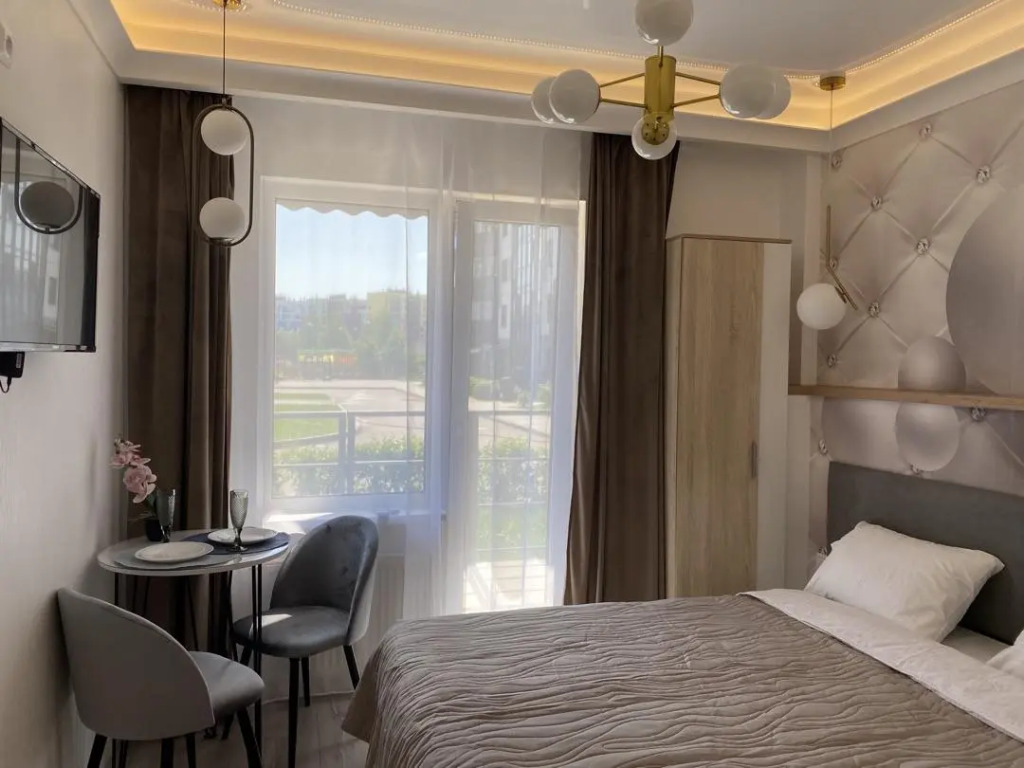 В распоряжении гостей: двуспальная кровать 160х200 с ортопедическим матрасом, которая может трансформироваться в отдельные спальные места. Кухня оснащена бытовой техникой, имеется полный набор посуды, запас чая, кофе и сахар. В ванной комнате установлена душевая, стиральная машина, фен, гигиенические и бытовые средства, также в апартаментах имеется утюг, гладильная доска, сушилка, телевизор, высокоскоростной Wi-Fi. Предоставляется постельное бельё и полотенца на каждого гостя.