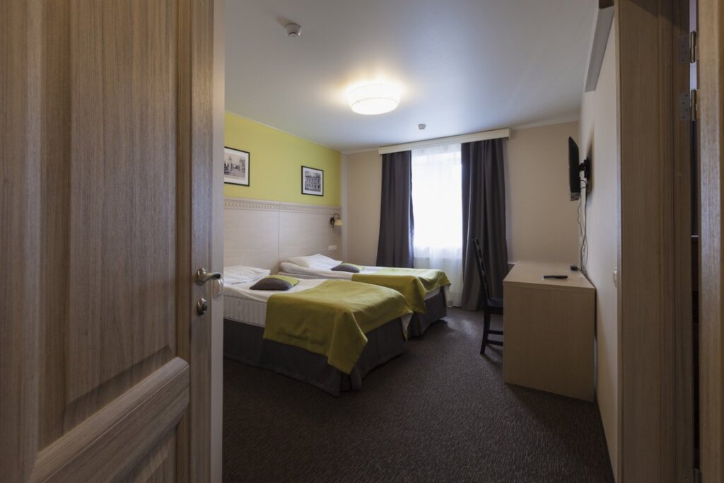 Отель расположен весьма удачно - на тихой улице, но в пешей доступности и от центра города, и от вокзалов, и от Гатчинского дворца.