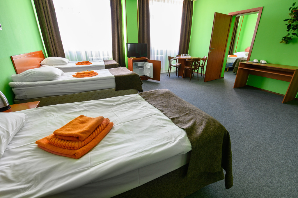 Гостиница включает в себя два корпуса: один на 75 номеров различных типов «Стандарт»: двухкомнатный, улучшенный, шестиместный, четырёхместный, двухместный, одноместный. А также есть отдельно стоящий корпус, состоящий из эконом-номеров на 50 койко-мест.